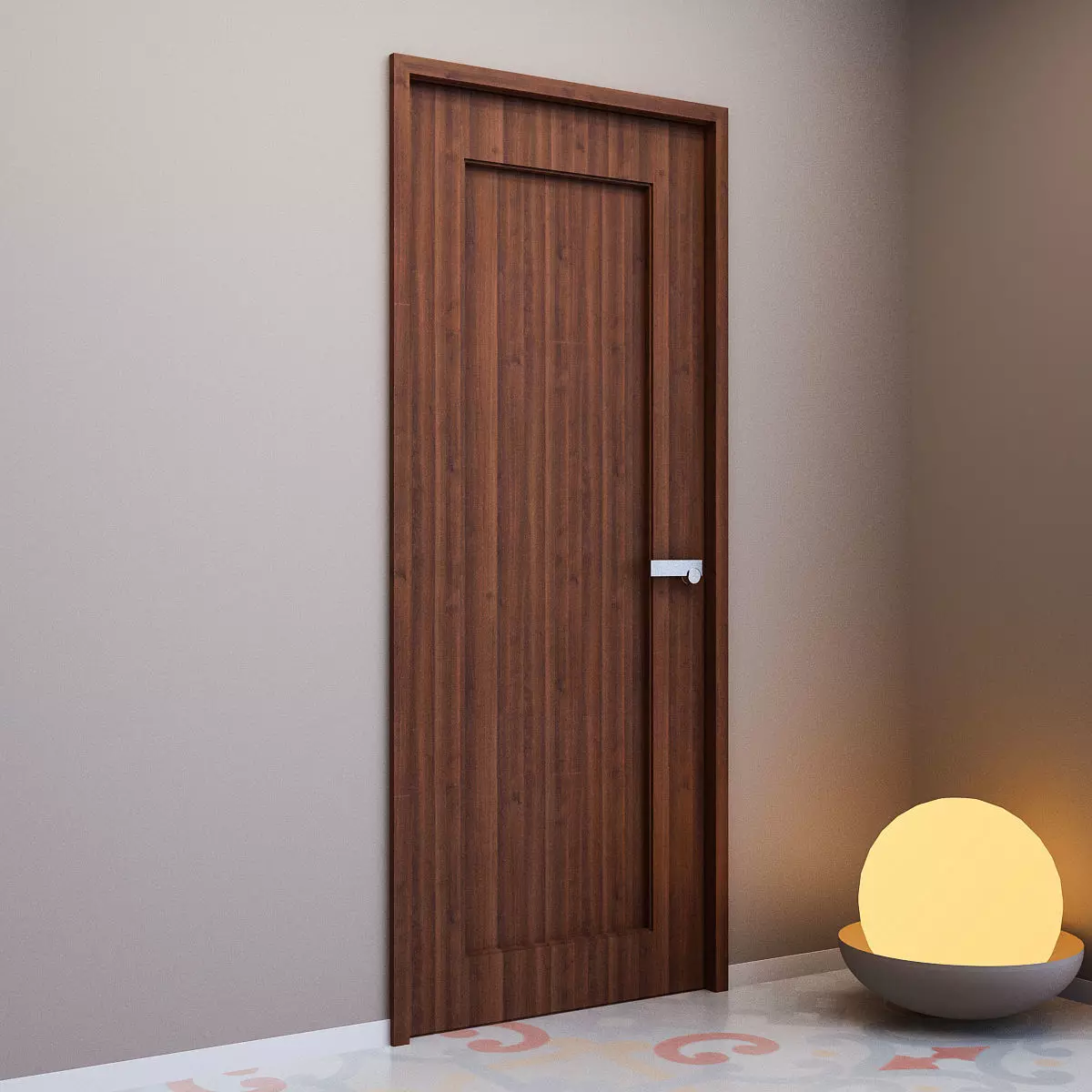 3d Model of Entrance Door. with simple designed brushed steel door handle.