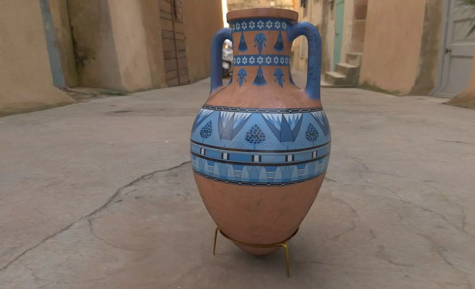 Here's a simple egyptian-style pot with clean topology and UV Mapping. Modeled in Blender, UV Mapped in Maya, and textured in Substance Painter. Original modeling software files included for further tweaking if necesary.