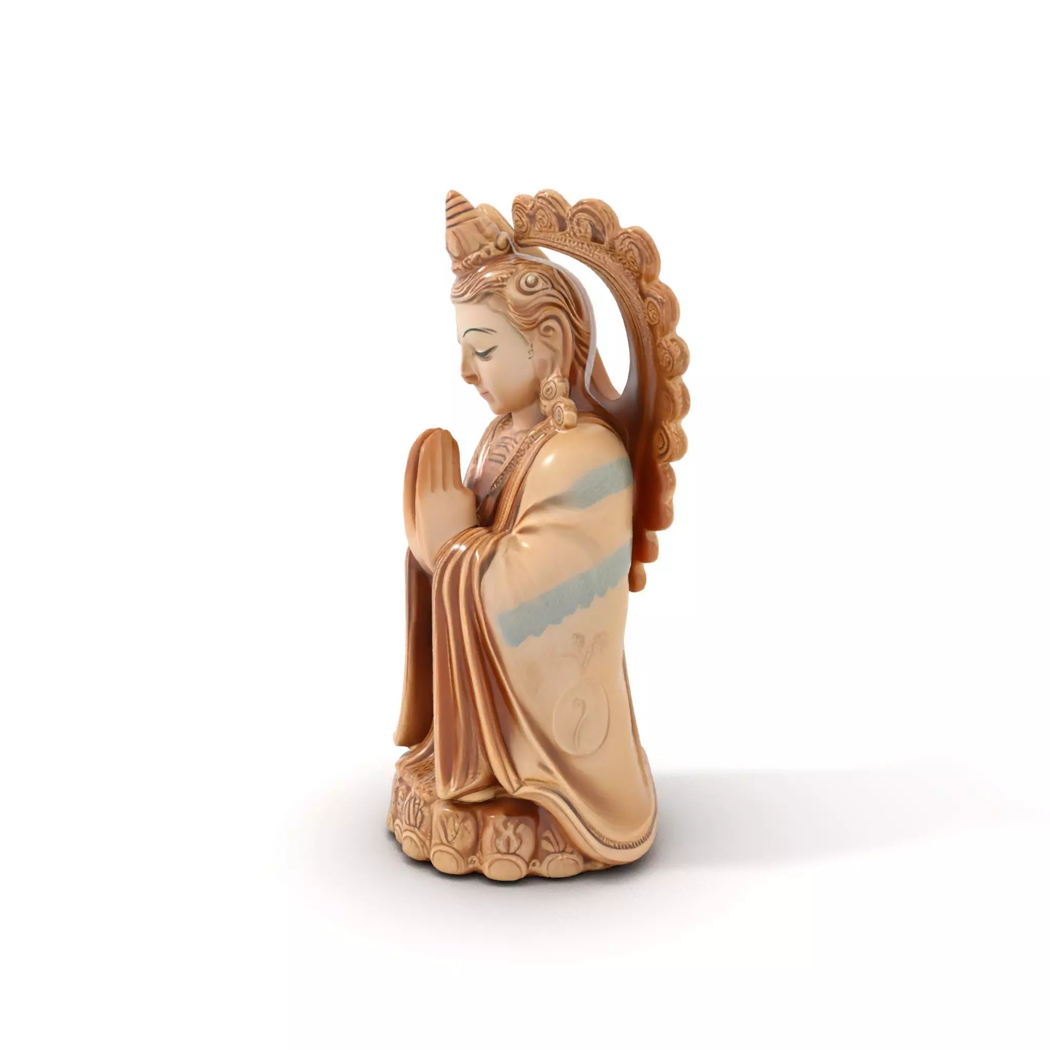 This intricately crafted 3D model represents an elegant statue capturing a moment of serene contemplation. Designed with precision, it features soft details and textures ideal for tranquil environments and art visualization. Each model has 3 levels of detail: low-poly (1000 triangles for mobile), middle-poly (10,000 triangles for environment), and high-poly (100,000 triangles), which allows for use in production rendering (such as 3ds Max, Maya, Cinema4D, Blender, Vray/Corona/Cycles and all others), game engines (Unity and Unreal compatible), and interactive presentations, providing a choice of detail based on the LOD System principle. Perfect for use in meditation apps, virtual museums, or as decorative elements in 3D visualization projects. The model's textures are PBR, Diffuse, NormalMap, and reflection/roughness/metallic, which are suitable for any modern rendering engine. All models are accurately unwrapped and have no overlapping UVs. Textures are 4096*4096 in size. Please like and leave a comment if you appreciate the model.