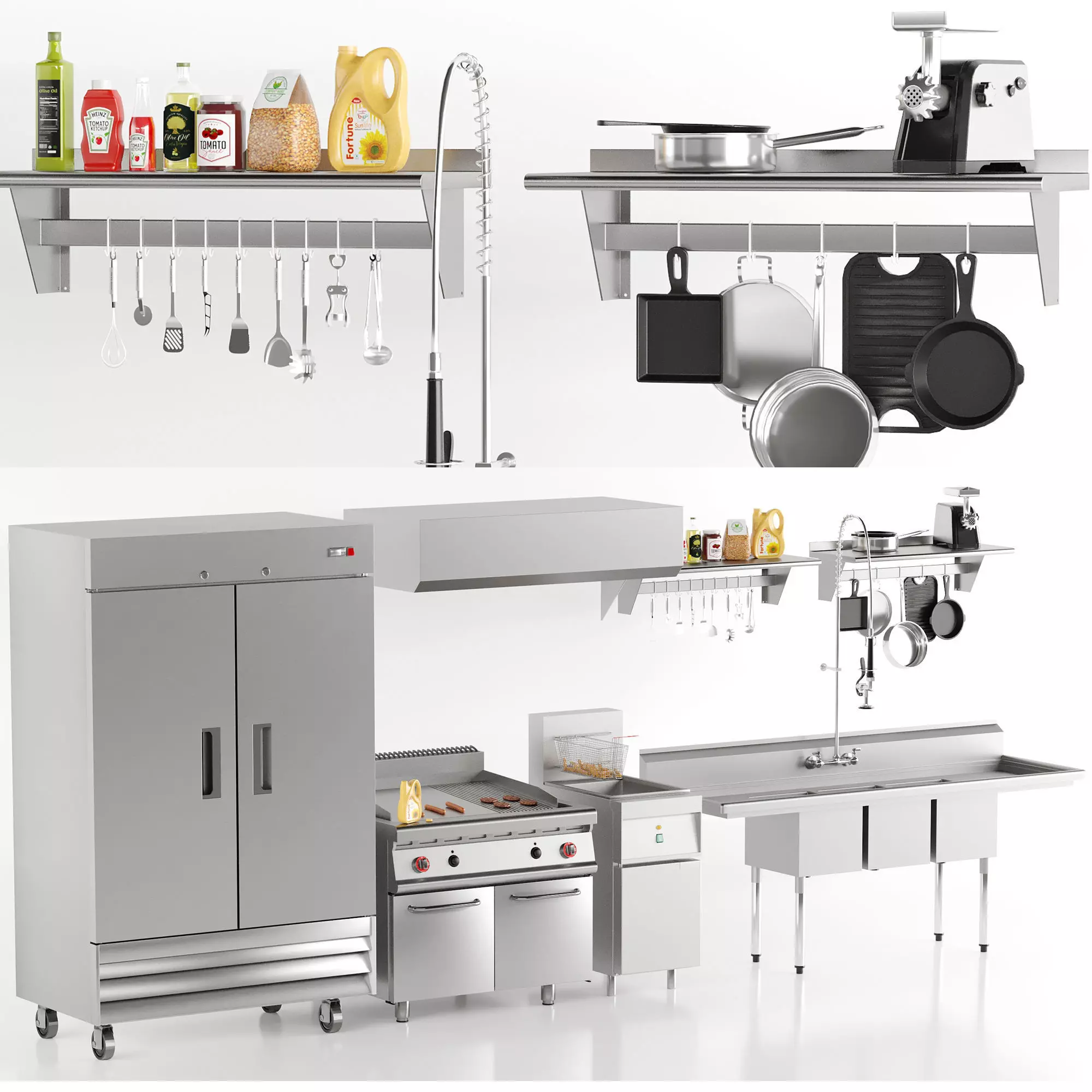 Fast Food EquipmentGas Griddle,FreezerFryer,SinkShelf,HoodMeat GrindersFaucet,AccessoriesMax Version Is 2015Fbx And ObjVray And Corona