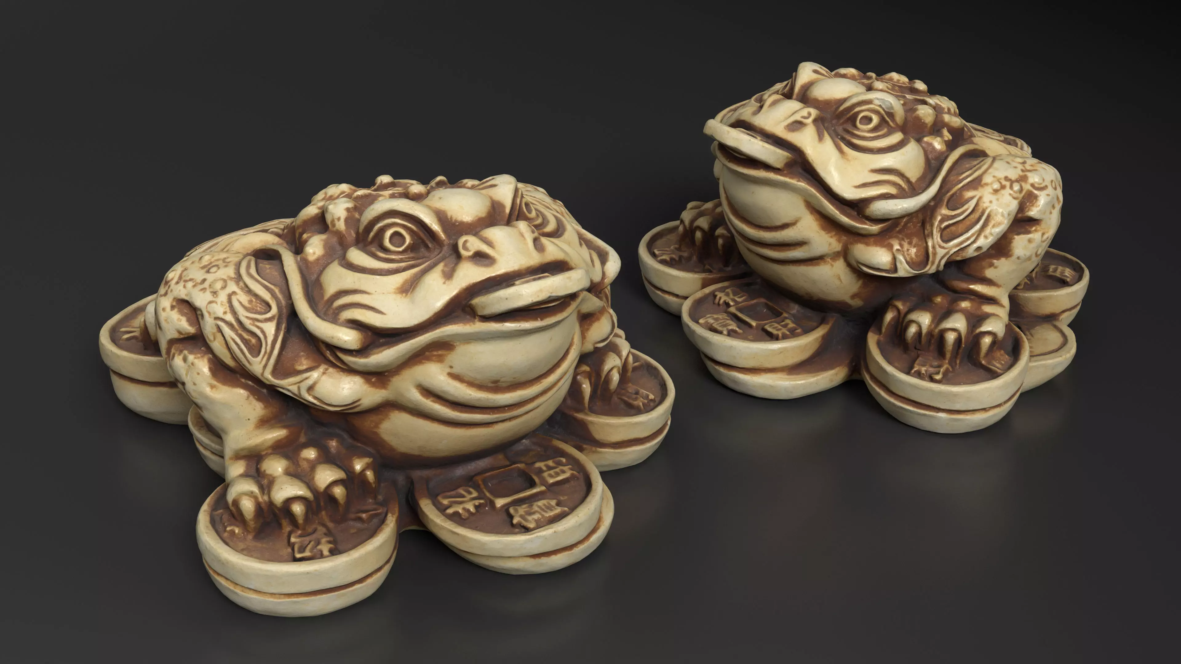 3D model Feng Shui Wealth Toad optimized for various purposes. Includes three polygon density versions Low, Mid, High and photorealistic 4K PBR textures. Game Ready model. Formats - FBX, OBJ, Blender.