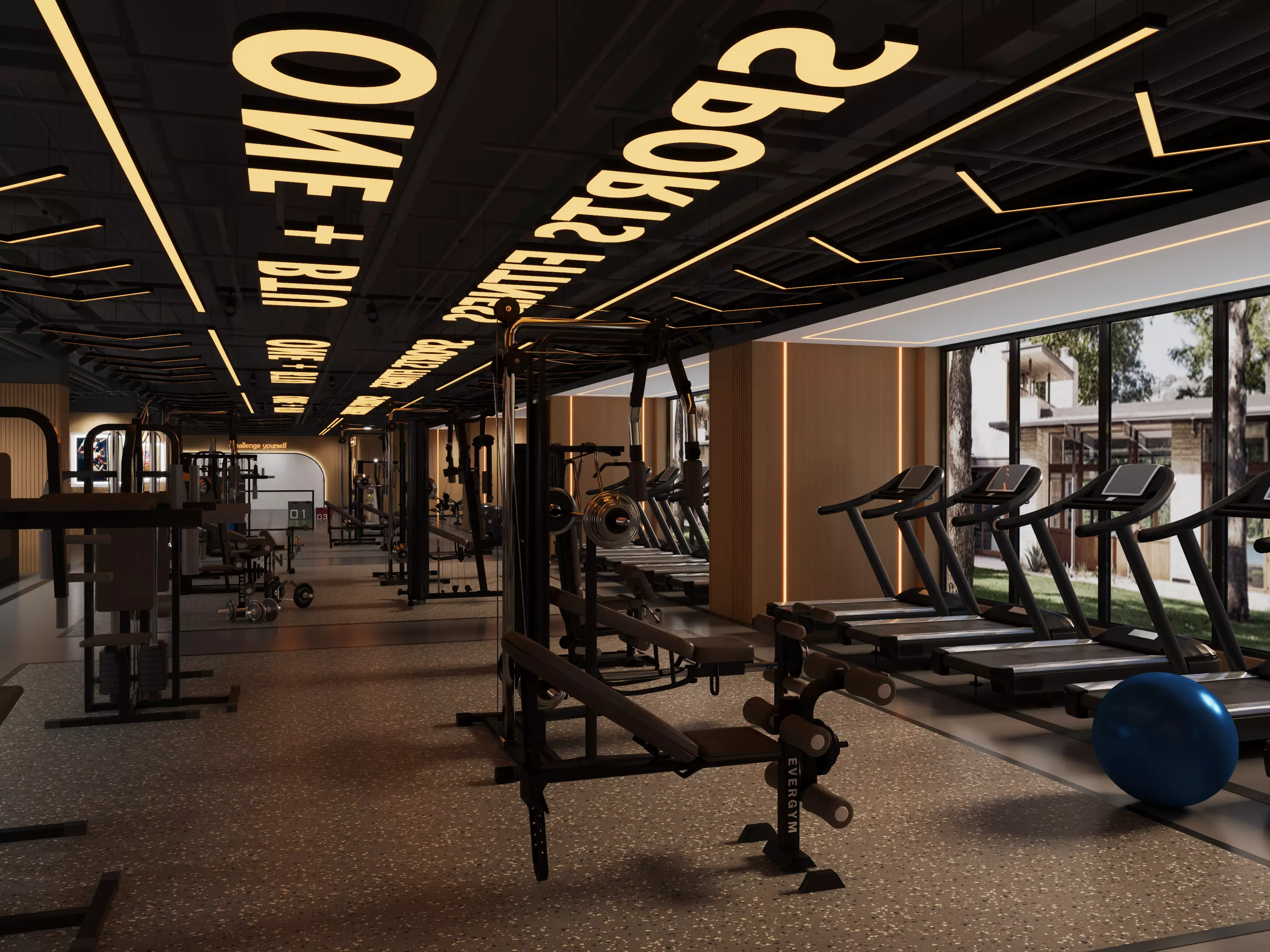 This is a high-end, production-ready 3D interior scene of a modern industrial gym. Featuring a signature black and gold color palette and creative illuminated ceiling typography, this scene offers a premium atmosphere for architectural visualization and commercial presentations.Key Highlights:Complete Commercial Layout: Includes a cardio zone (treadmills), strength training area (power racks, benches), and functional training space.Signature Lighting: Unique ONE+BLOOD LED ceiling light boxes and linear accent lighting pre-configured for a cinematic look.Detailed Assets: High-quality fitness equipment models with realistic PBR materials and textures.Optimized for V-Ray: Fully textured and lit using V-Ray, ready for high-resolution 8K rendering.Multi-Format Support: Native 3ds Max file with clean exports in FBX and OBJ for cross-platform compatibility.Technical Specifications:Software: 3ds Max (Native)Renderer: V-RayFormats: .MAX, .FBX, .OBJUnits: CentimetersTextures: High-resolution PBR textures included.Geometry: Clean topology, suitable for close-up shots.