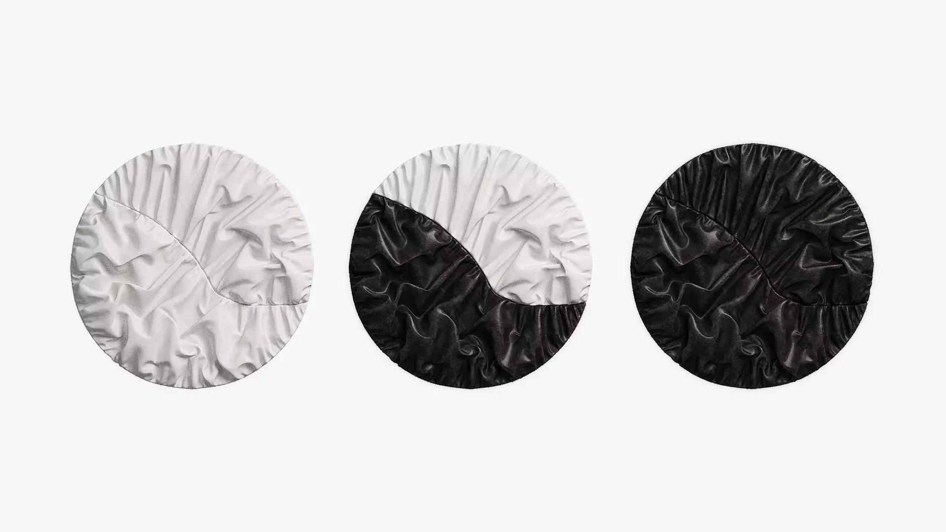 Relief round panel with a surface imitating folds of fabric. There are options in white, black and a combined black and white version. Material: imitation stone