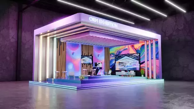 futuristic booth, sci-fi booth, neon booth, exhibition booth, 3d booth, 3d exhibition stand, modern exhibition booth, futuristic stand, scifi exhibition, neon 3d model, booth 3d model, trade show booth, sci-fi environment, exhibition stand 3d, futuristic design, blender booth model, vr booth, ar exhibition booth, low poly booth, high poly booth