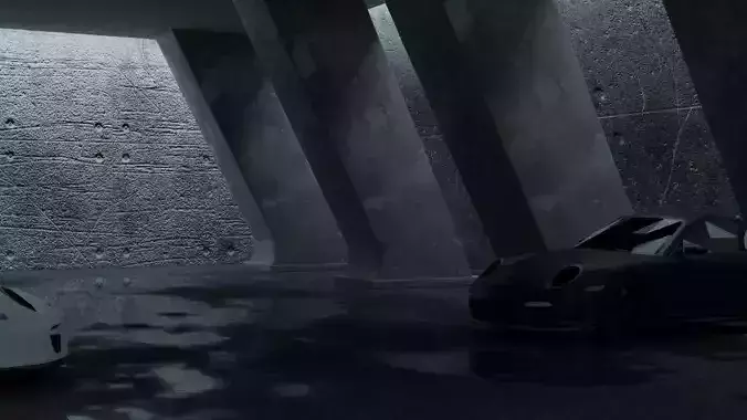 garage two porsche cars parked in 3D model