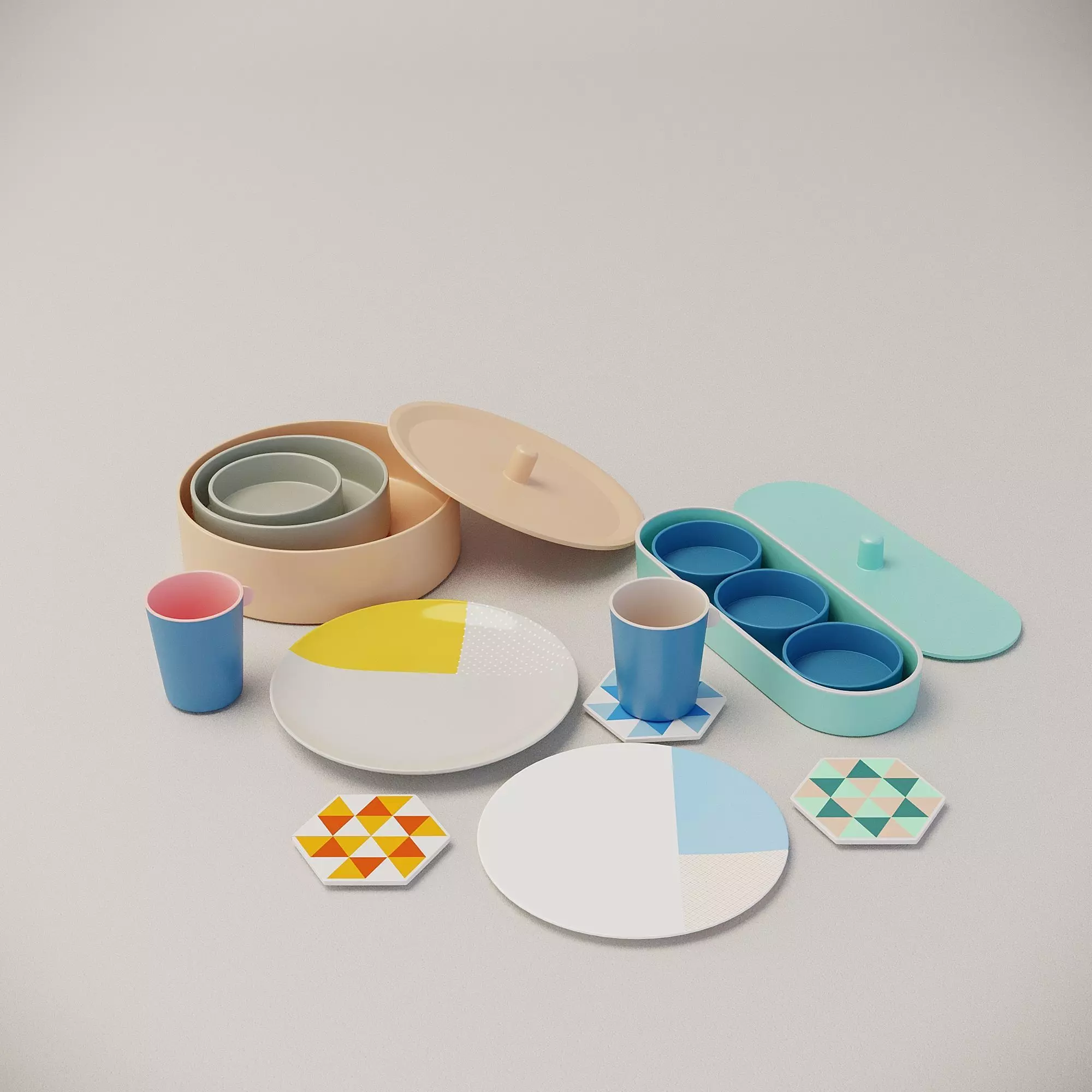 The model has material settings that define how surfaces look (color, shine, transparency, etc.).