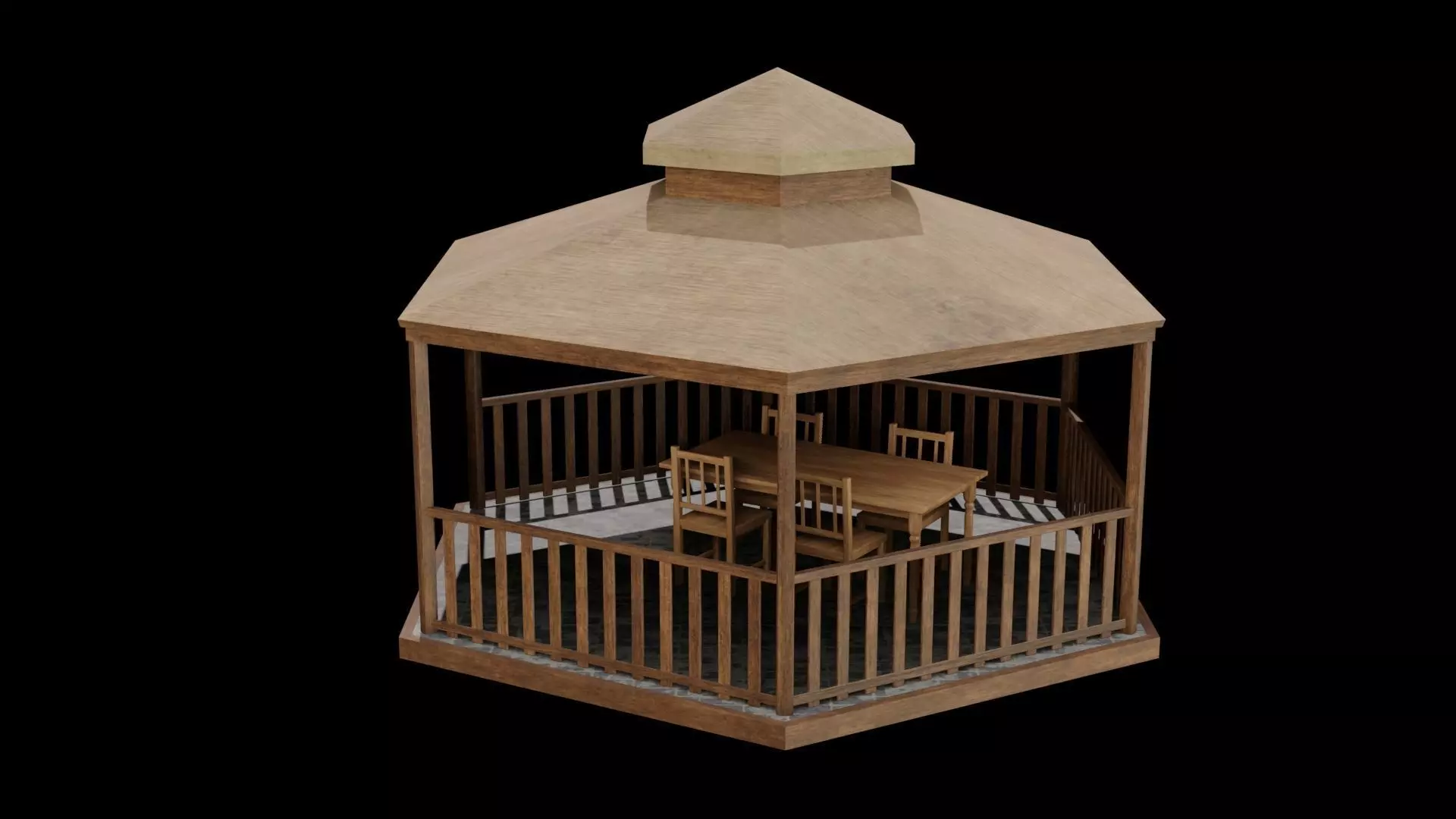 Gazeboo 3D model Low-poly wooden gazebo Low-poly 3D model