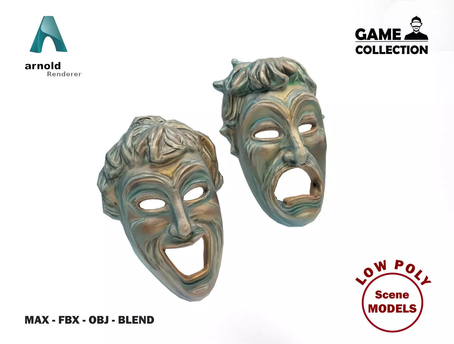 3D Models of Greek theater masks. All the models are low poly, basic but realistic and are ideal for 3D scenes that require few polygons. They can be used for advertising visualitations and also for games or applications. It has been created in different 3D Studio Max versions and also in FBX, OBJ, and blend.