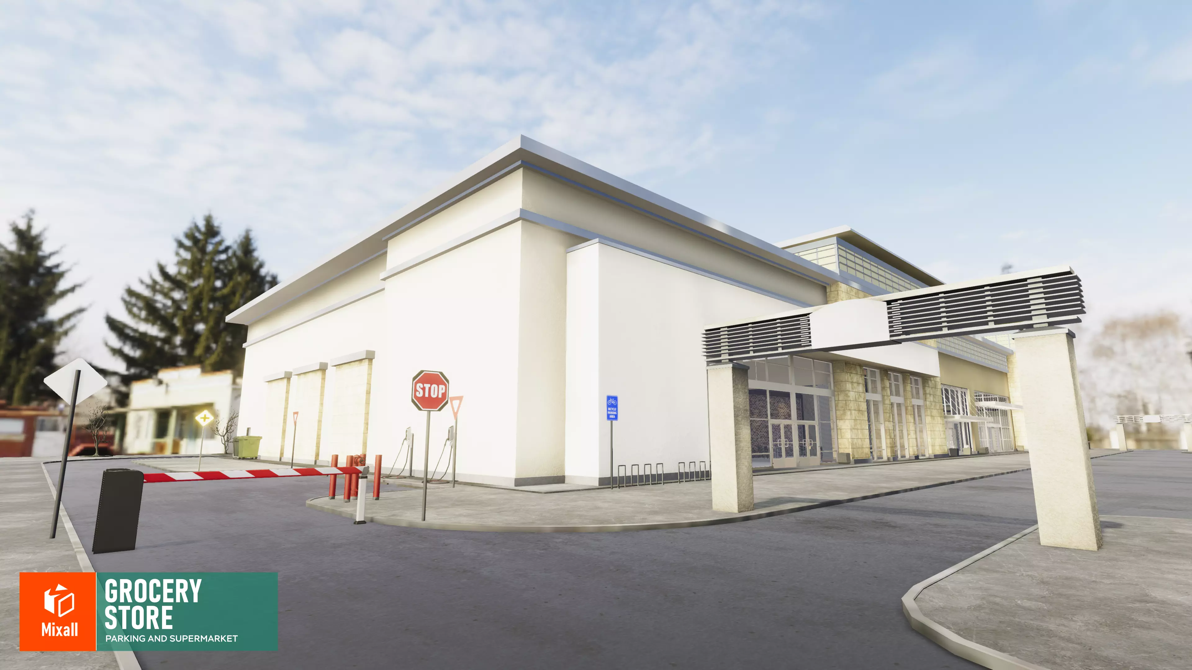 Mixall studio presents a good solution for your games, VR projects and simulators: Grocery store - parking and supermarket. Interior of a grocery store with a great number of models of food, drinks and other products. In the scene there is furniture like shelving and a counter desk. There are also advertising posters, shopping baskets, a shopping cart, coolers, a freezer, ,a cash register and many groceries. There is also a large parking outdoor scene included. ** Key Features **high quality interior and exteriormany quality models900+ prefabscafeteria and parking zonegame ready demo scene*Assets *Grocery store building.Furniture: Dressing room, Fruit shelf, Fruit vegetable Box, Mannequins, Mic box, Shelves, Small shelves, Trolley, Trolley Parking, TS Garbage Bin, TS Garbage Door, TS Out Door, LTS Out Door S, TS Simple Props, Wine stand.Products: AC Charger, Acoustic, Agave, Apple, Arrows, Artichoke, Autocachier, Ax, Bags, Ball Glove, Banana, Bandage, Barrier Gate, Bar table, Baseball Ball, Baseball Bit, Baseball Helmet, Basket, Basketball Ball, Basses, Battery, Beers, Beet, Bench, Bicycle, Big Tennis Ball, Big Tennis Racquet, Biscuits, BMX, Boots, Bottles, Bow, Bread, Brilliant Green, Broccoli, Broom and Scoop, Brushes, Bucket, Burner, Bush, Cabbage, Cactus Large, Cactus Small, Can, Candy box, Canister, Canister Big, Canned Foodes, Cap, Car backet, Carpet, Carrot, Cauliflower, CD, Cello, Centrifuge, Cereals, Chairs, Cheese, Chicken, Child Scooter, Children Bicycle, Chips, Cleats, Clothes, Coil, Column, Compass, Computer, Cricket Ball, Cricket Bit, Croissant, Crossbow, Cucumber, Curling Brush, Curling Stone, Cutters, cutting Board, Dart Board, Disinfectant, Drums, Dryer, Edwind box, Eggplant, Electro 1, Electro 2, Electro Scooter, Enema, Extinguisher, Fast Bike, Fences, First Aid Kit, Fish, Fit Ball, Food Boxes, Football Dummy, Garlic, Glass brush, Goalkeeper Helmet, Golf Bag, Golf Ball, Golf Club, Grand Piano, Grocery lamp, Grocery rack, Grocery table, Grocery weight, Gum, Hangers, Hats, Tulips, Tum Screw, Ukulele, Unicycle, USB box, Vacuum Cleaner (Hose), Vacuum Cleaner, Vacuum Cleaners, Vantus, Vinyl, Violin, Volleyball Ball, Watch, Watermelon, Wheelbarrow and ect.Technique: ATM, Average fridge, Big fridge, Cash machine, Cash register Cashbox, Cashier, Fridges, Machines, Meat fridge, Open fridge, Refrigerator, Small fridge.Other: Frames, Pack, Pack stand, Paper bag, Paper box, Parking Arch, Parking Dividers, Parking Lot Decal Plane, Payment, Roadside Signs, Roadside Sign Pole, Signboard, Terrain, Tire Decal Plane 1, Tire Decal Plane 2, Tire Decal Plane 3, Tree, Trashes.
