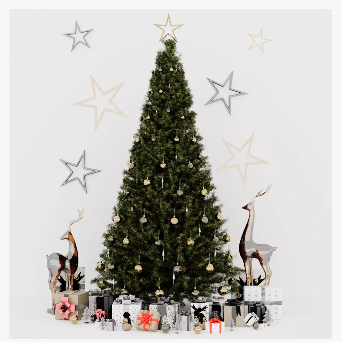 christmas tree xmas new year fir holiday decoration snow winter santa claus 3d model gift pine festive conifer ornament present realistic supruce