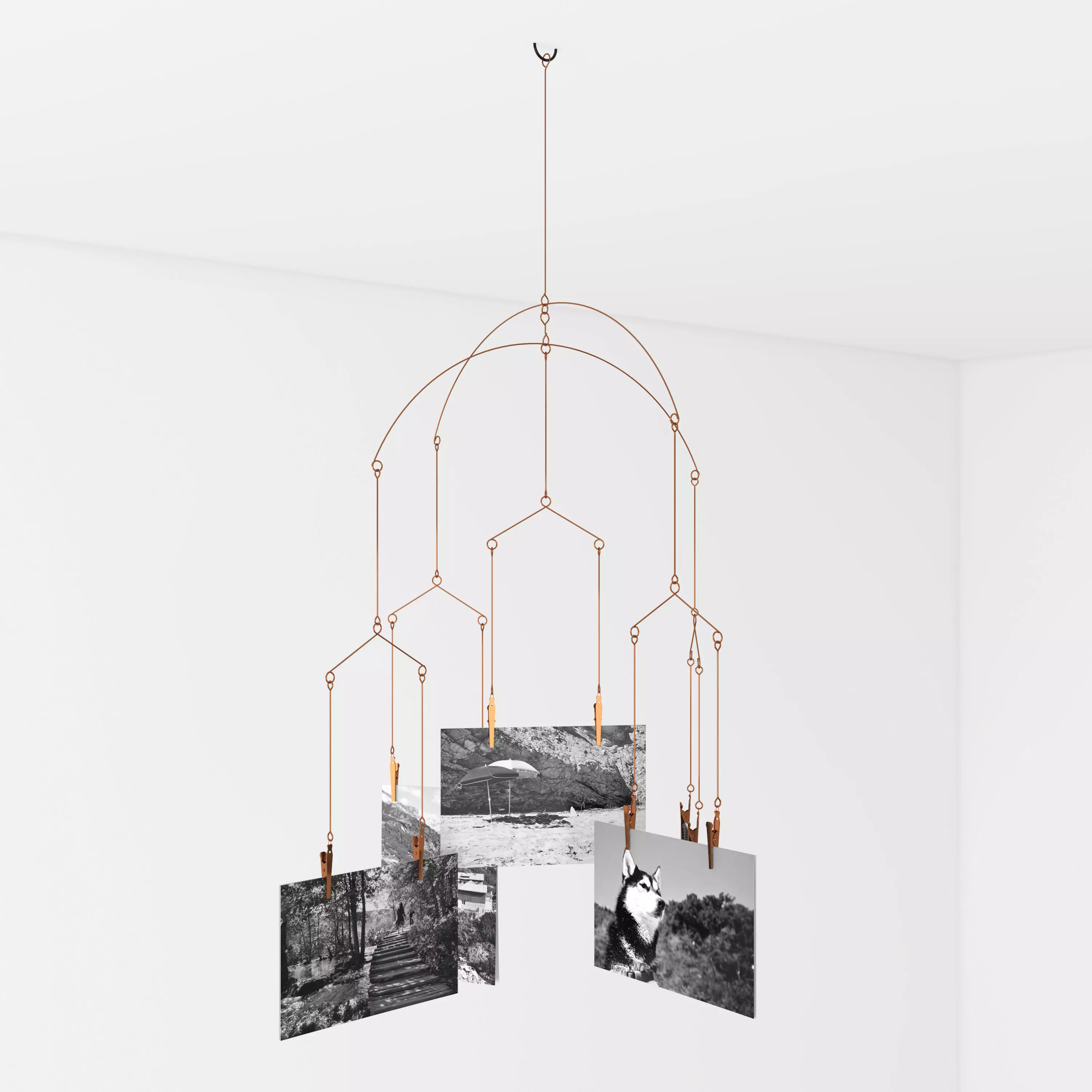 DESCRIPTION: A simple designed home decoration entirely made of copper.The hanging chip clips could hold up to 10 photos (15x10cm).