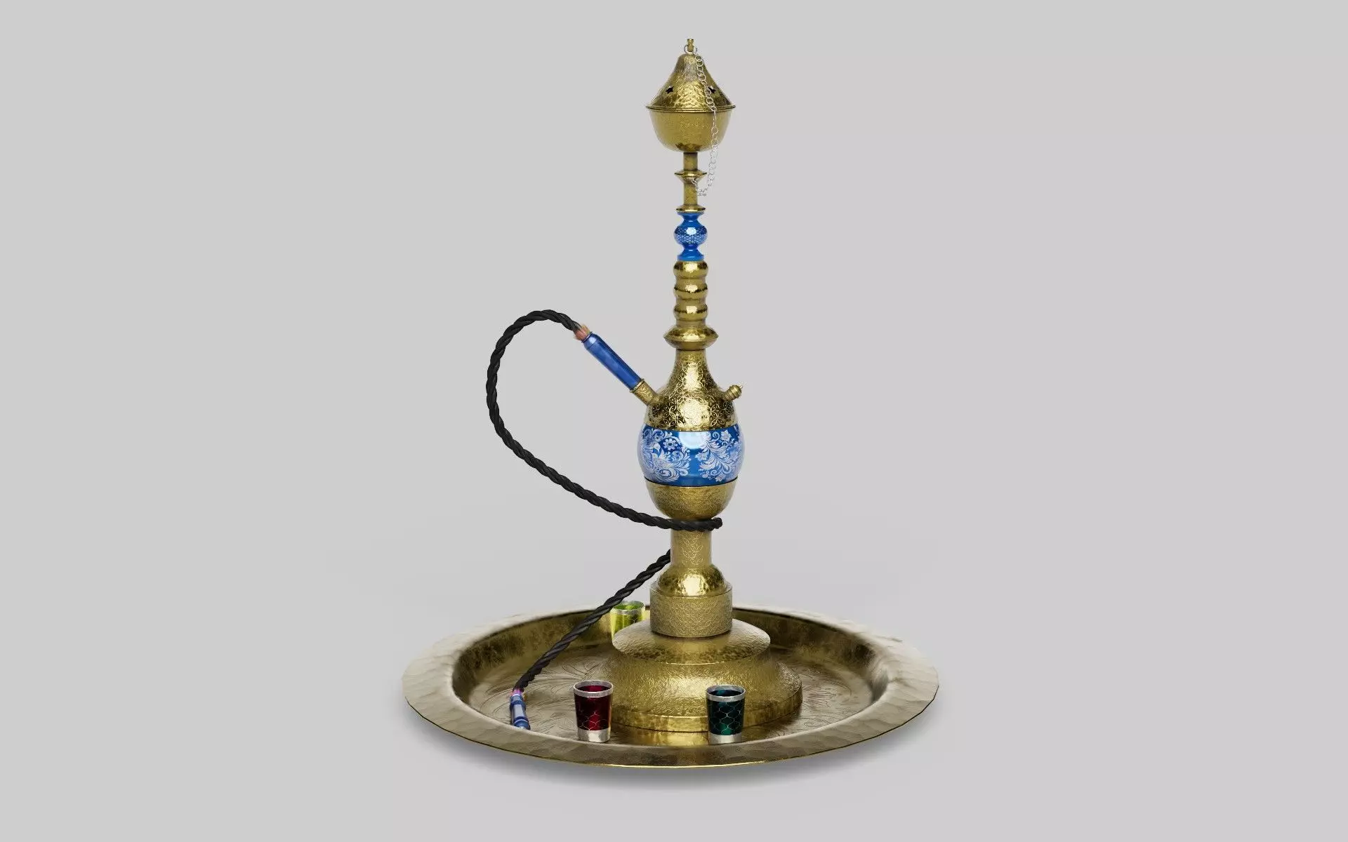 Discover this meticulously crafted 3D model of a traditional hookah, also known as shisha or narghilè. Perfect for use as a decorative piece or smoking accessory, this waterpipe embodies the luxury and craftsmanship of Middle Eastern culture.