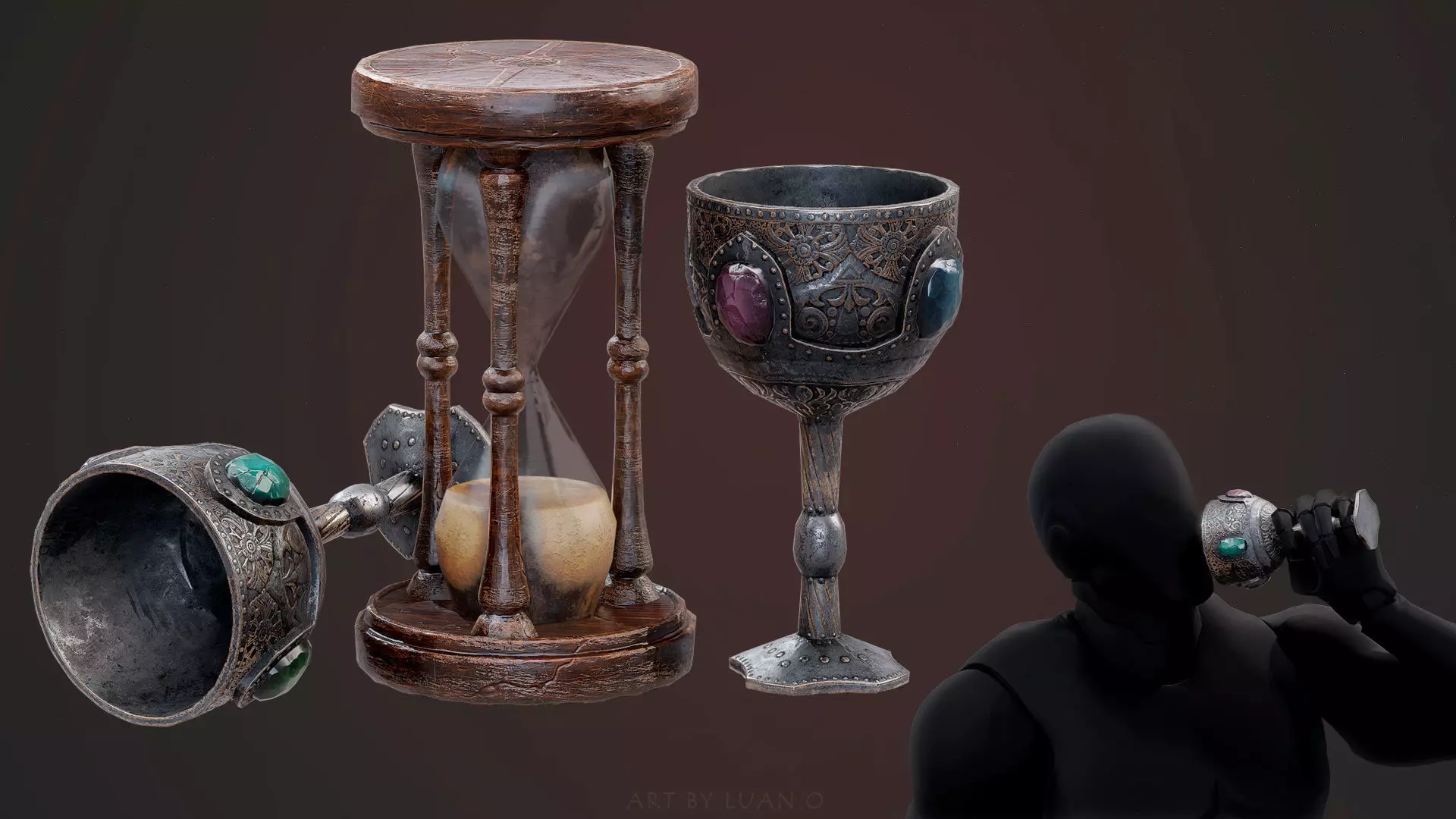 Hourglass and Chalice Low-poly 3D model
