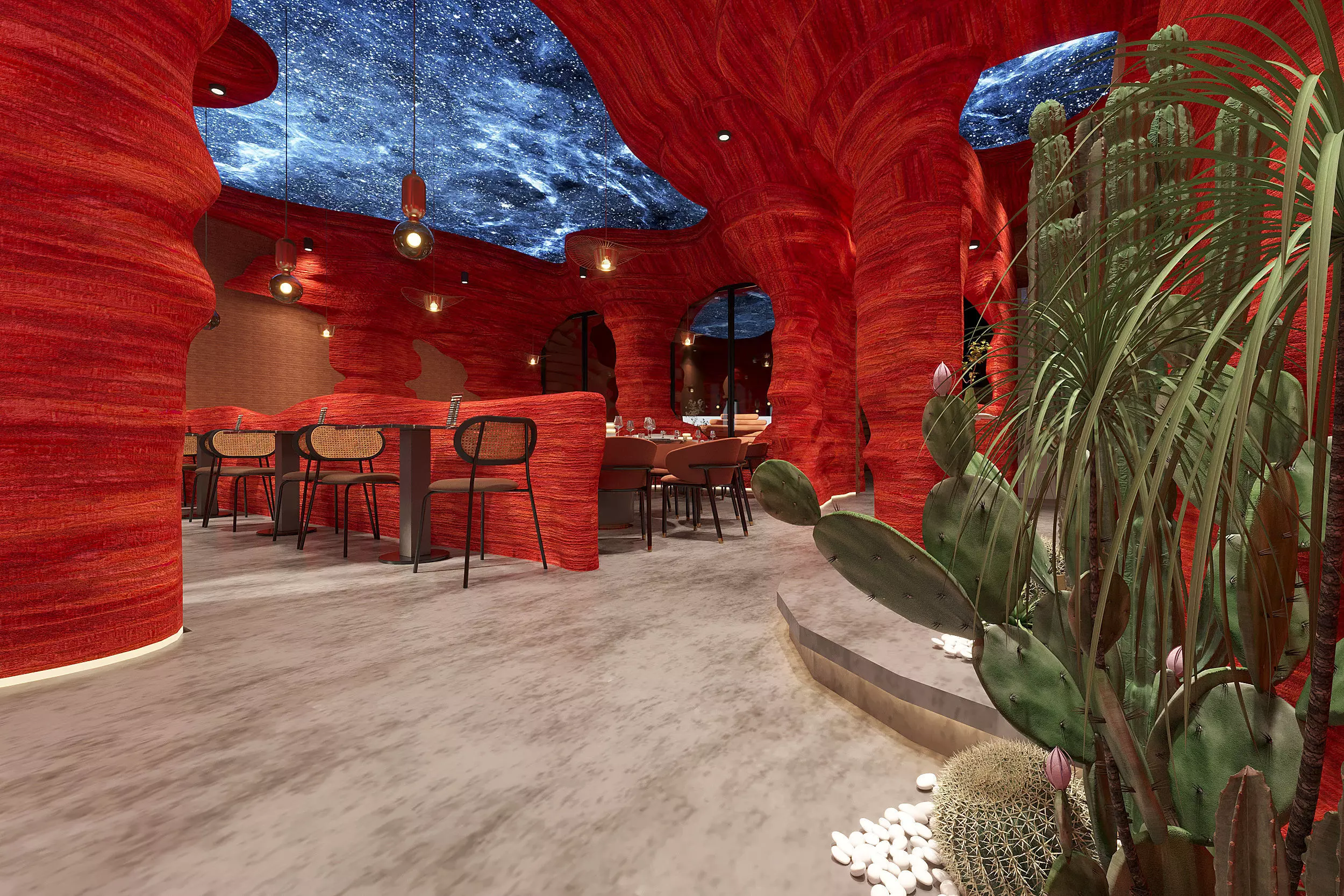 From the rock wall textures to the starry sky dome, from the desert greenery to the ambient lighting, the entire space follows a unified design language, making every diner feel as if they have truly traveled to a Martian cave, embarking on an immersive feast for both the taste buds and the eyes.
