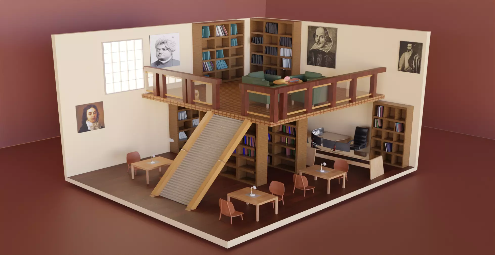 The model has material settings that define how surfaces look (color, shine, transparency, etc.).