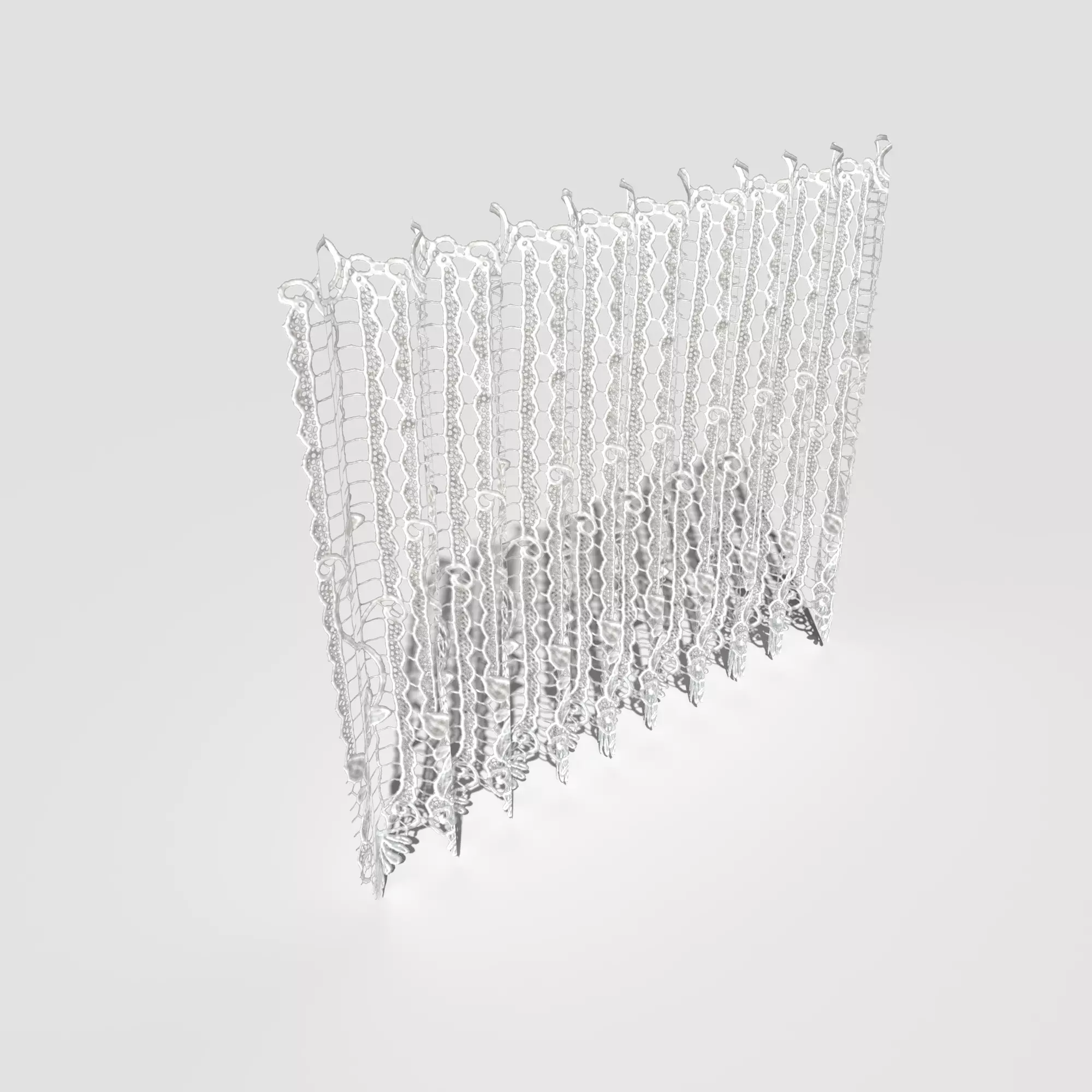 This is PBR Lace Curtain Short. The file includes a model in real world scale (60cm x 5cm x 51cm). It comes in following formats: