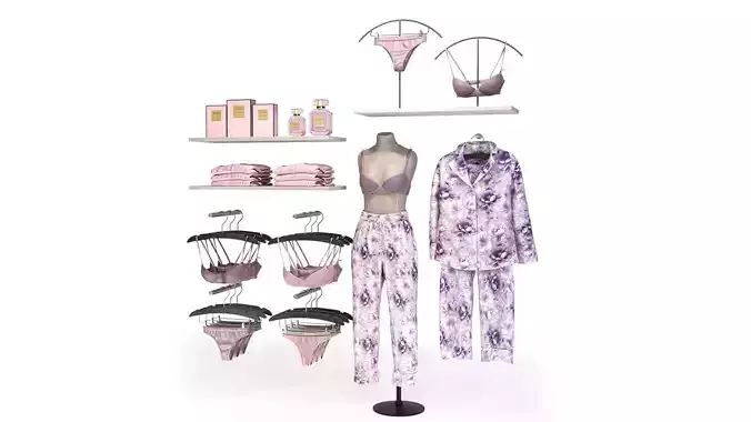 Designed for fashion retail visualization, lingerie boutiques, and commercial interior scenes, this set offers a clean, soft, and feminine aesthetic suitable for high-end renders and marketing presentations.