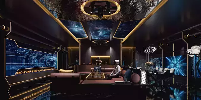 Description:A stylish and atmospheric VIP club room designed with a luxurious modern aesthetic. The space features rich materials, ambient lighting, and comfortable seating, creating an exclusive and relaxing environment for private entertainment and gatherings.