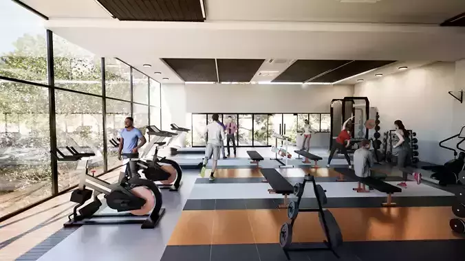 This modern gym interior 3D model is designed to meet the highest standards, perfect for fitness studios, architectural visualizations, or interior design projects. The space is crafted with attention to detail, offering an expansive workout area, custom gym equipment, and functional spaces such as the reception area, changing rooms, and rest areas. The design is sleek, spacious, and optimizes the use of light and materials to create an inspiring, energetic environment.