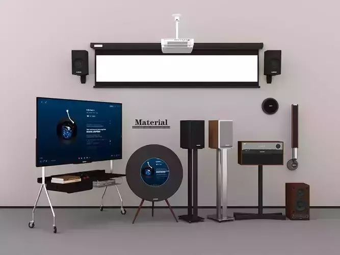 A modern Hi-Fi audio and home theater display 3D scene designed for interior visualization, product demonstrations, and commercial rendering.