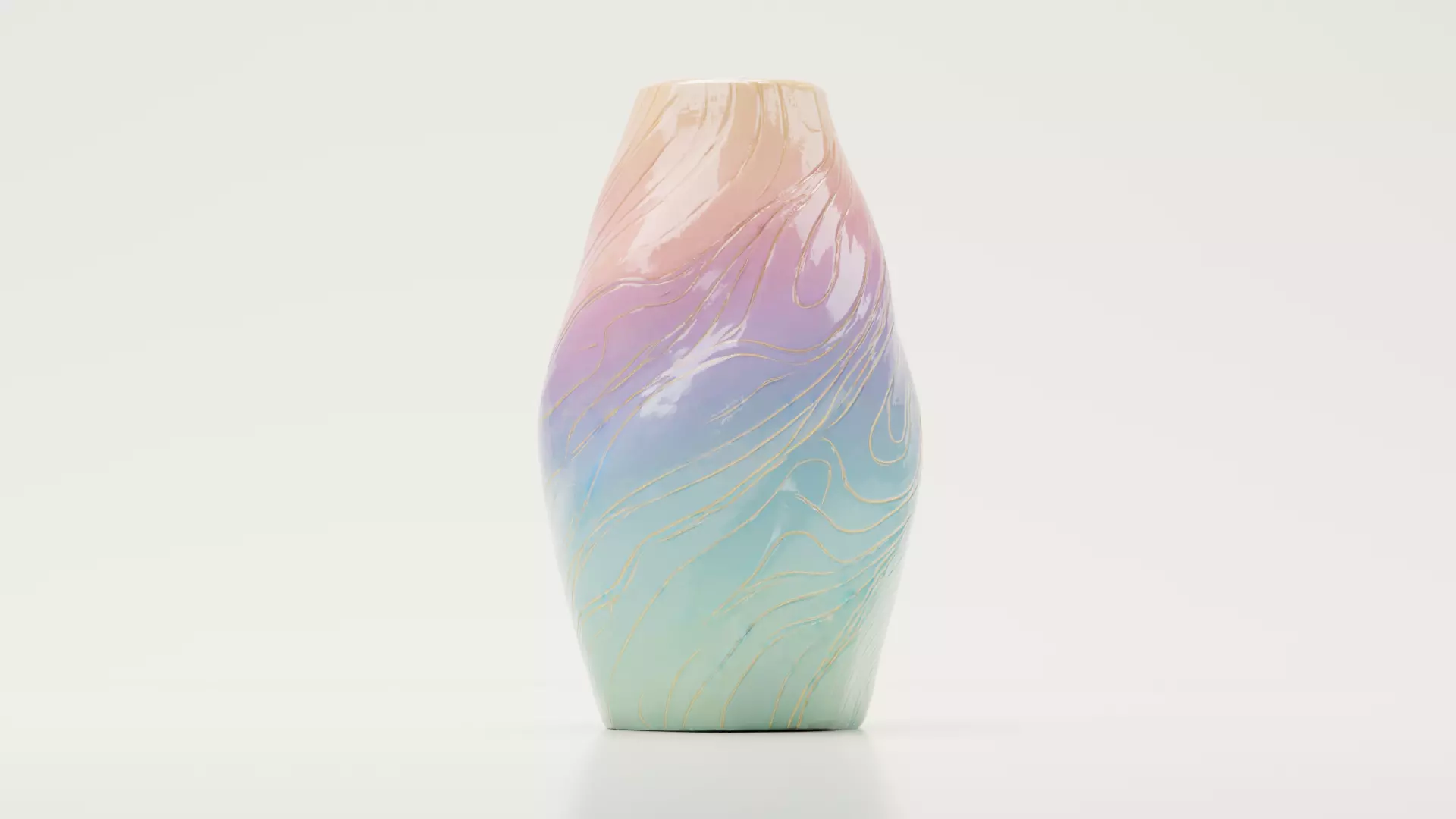 Add a touch of contemporary elegance to your interior renders or digital environments with this Modern Sculptural Pastel Gradient Vase. This model features a beautiful iridescent color transition—from soft peach and violet to cool teal—accentuated by organic, flowing carved lines that catch the light perfectly.