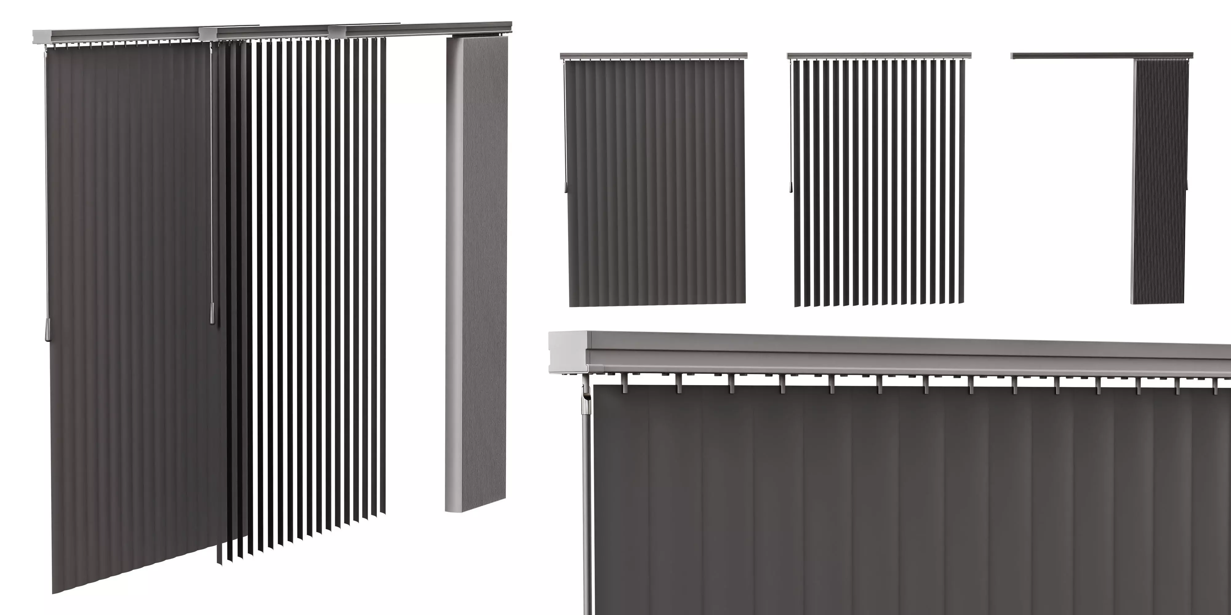 This professional 3D asset pack offers a collection of high-quality vertical blinds, perfect for adding realism and detail to your modern interior and architectural visualization projects. This versatile set is designed to provide complete control over light and privacy, and can be easily adapted to various window sizes.