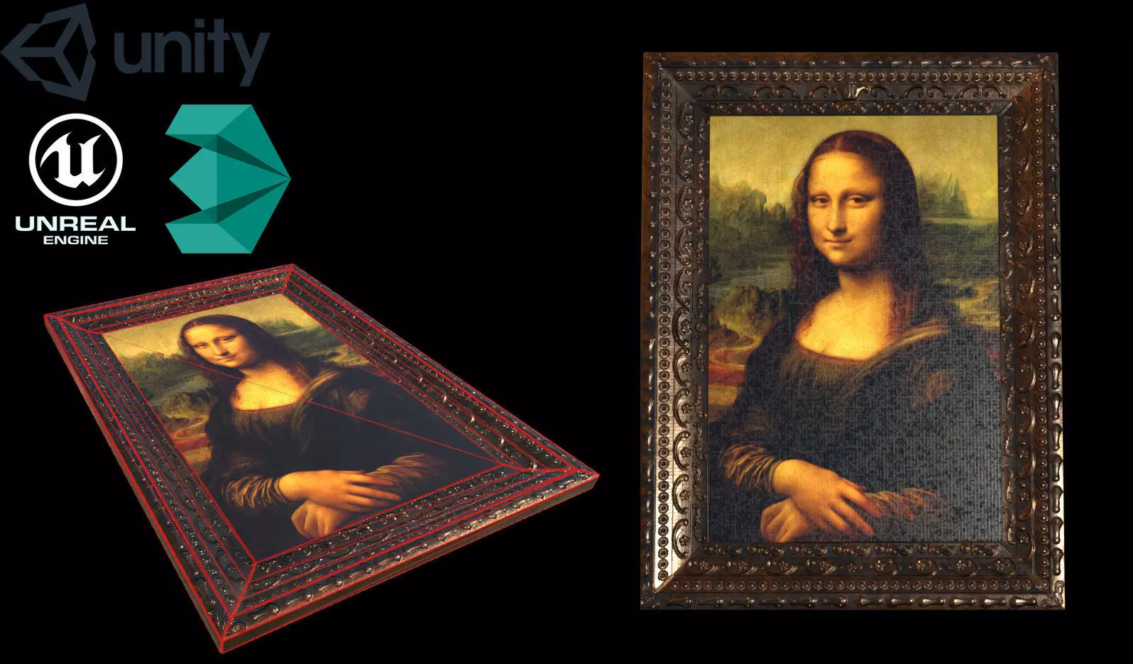 The Mona Lisa is a half-length portrait painting by the Italian Renaissance artist Leonardo da Vinci that has been described as the best known, the most visited, the most written about, the most sung about, the most parodied work of art in the world. The Mona Lisa is also one of the most valuable paintings in the world. Here lowpoly PBR 3d model of this famous painting
