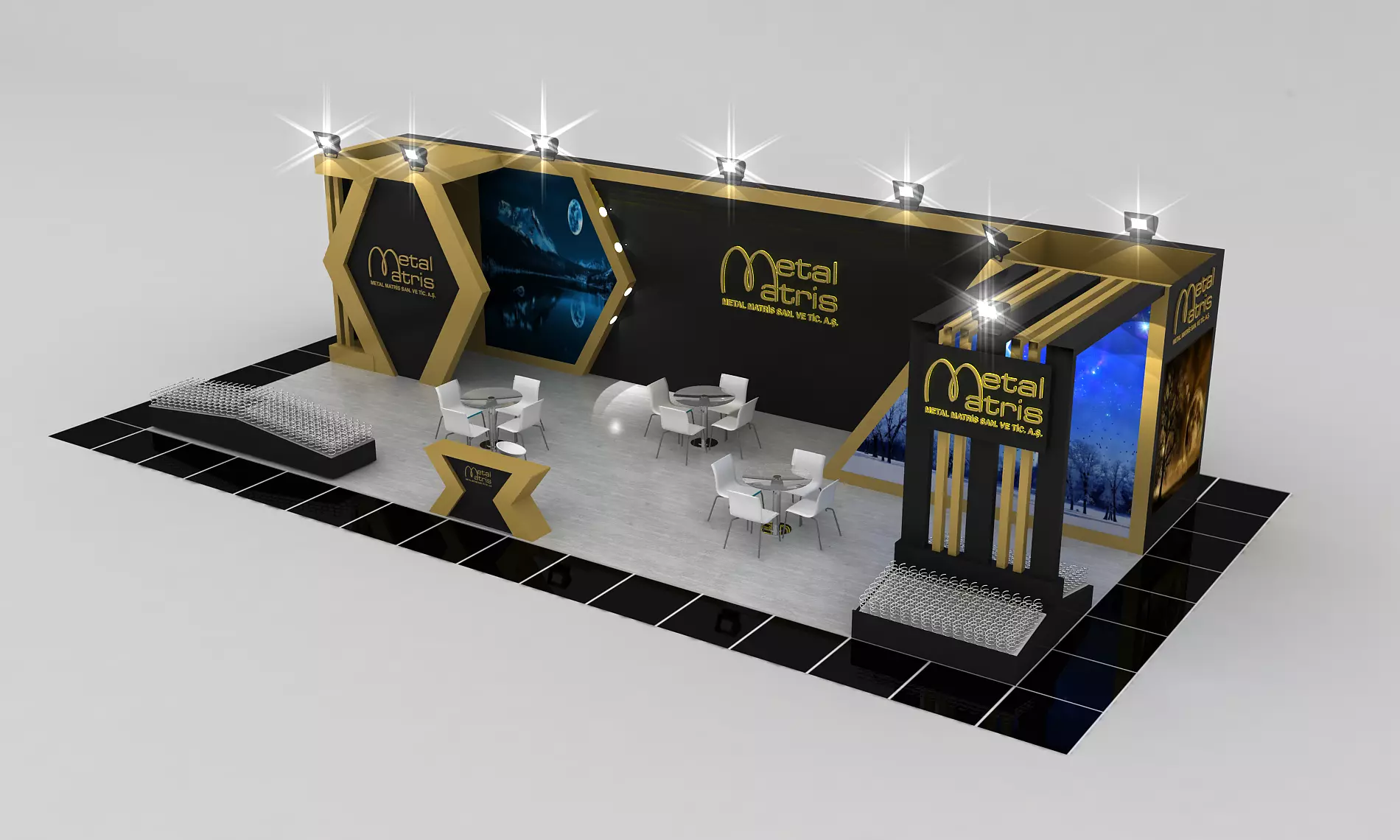 Stall Size 14 m x 6 m Height 350 cm - 3 Side open- Store- Reception table- TV