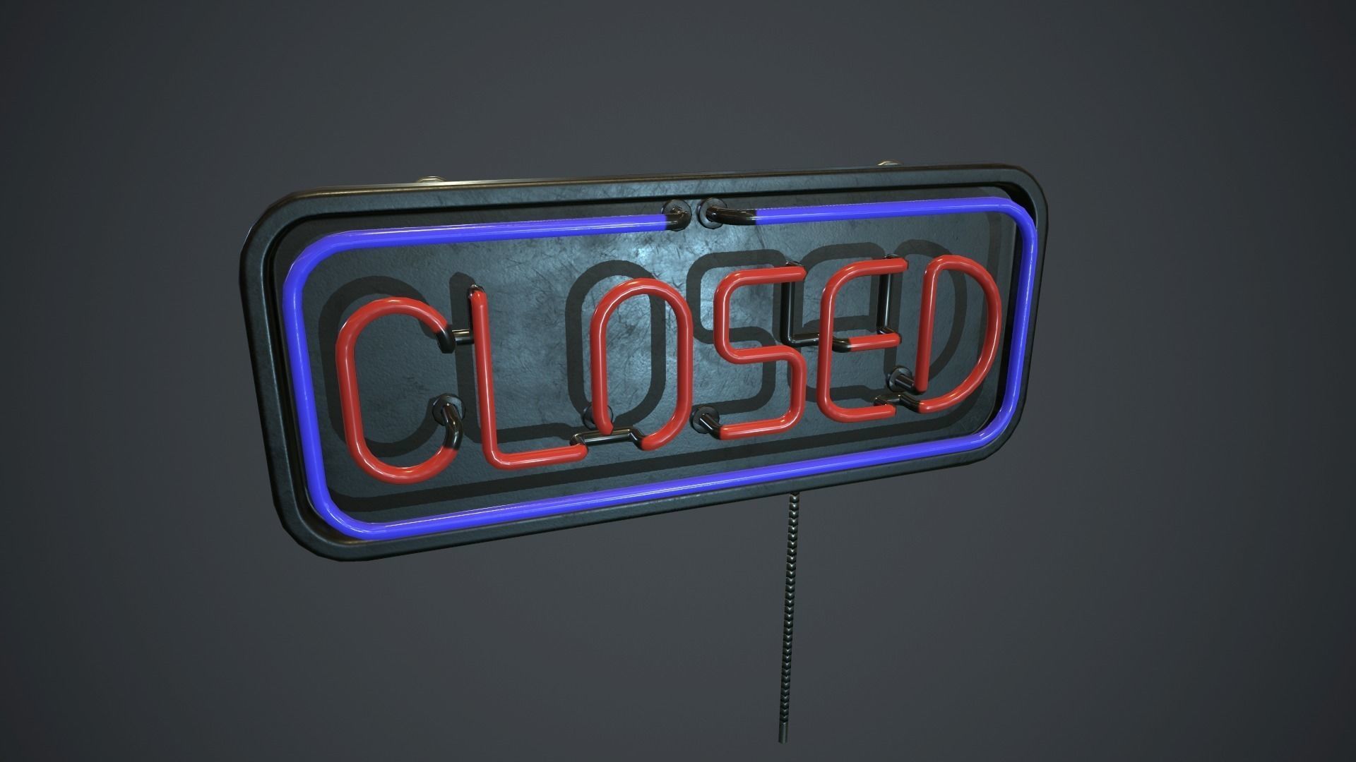Neon Closed Sign PBR Game Ready Low-poly 3D model