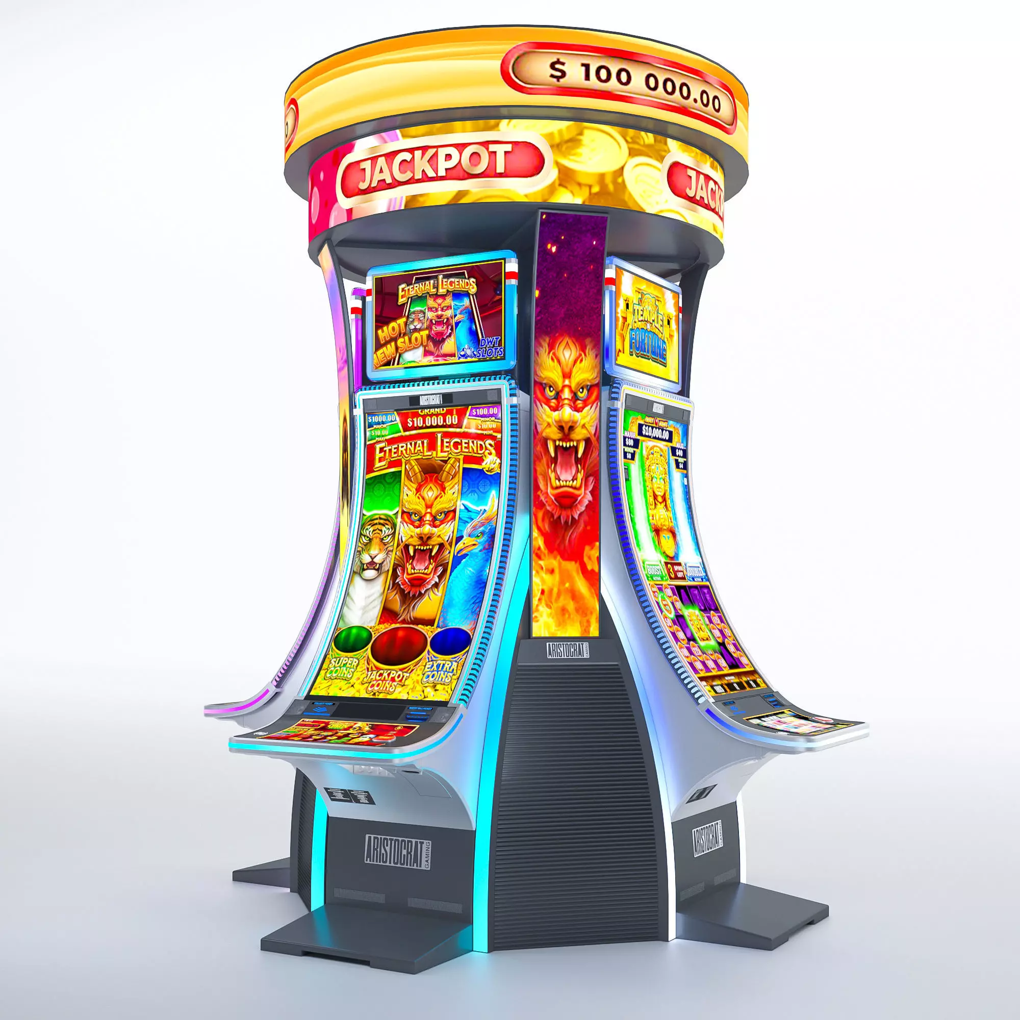 This is the latest-generation Neptune Single slot machine model from Aristocrat, recently released. The model stands out with its perfect curvature, integrated with a stunning 49-inch ultra-HD screen, delivering an incredibly vivid, vibrant, and high-contrast gaming experience.