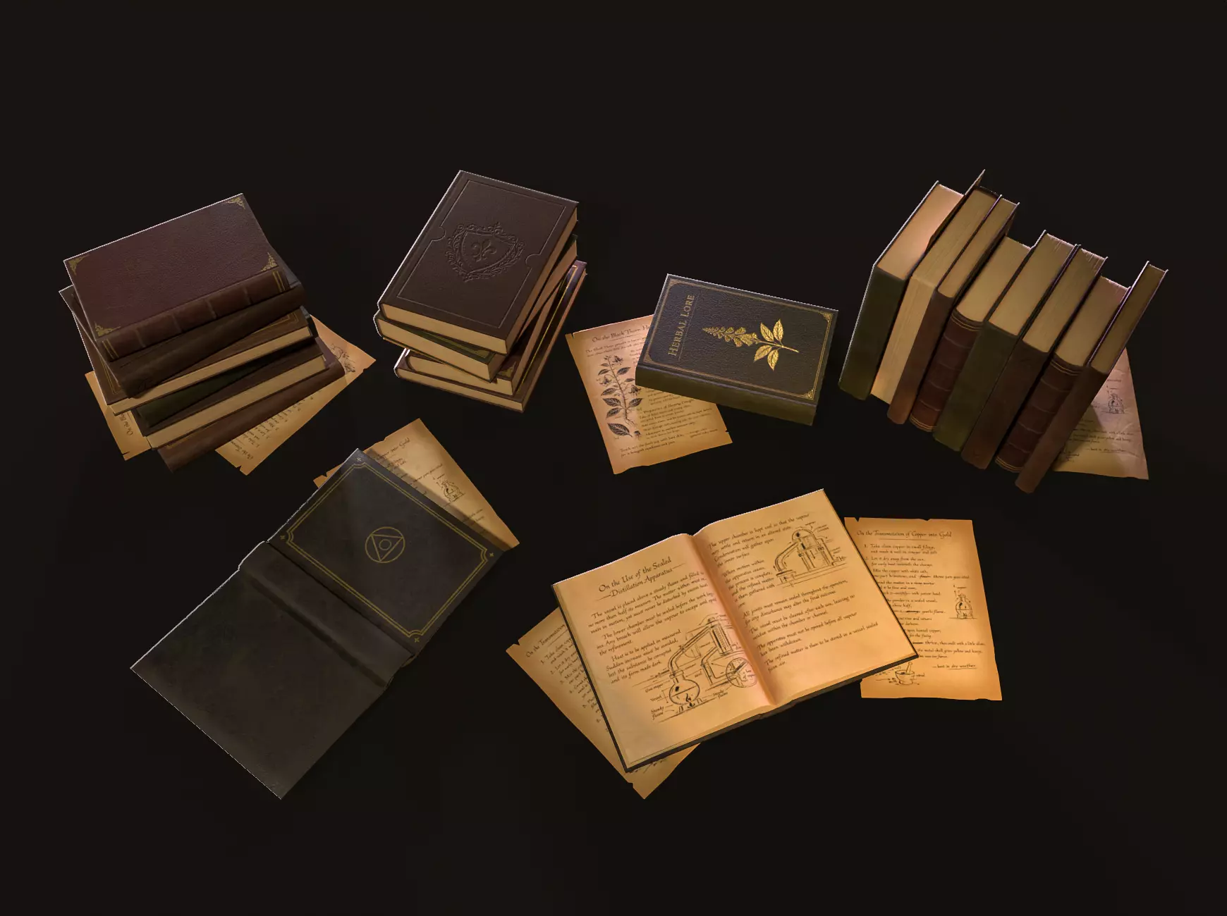 Old Books Pack – Low Poly PBR is a set of low poly book props with PBR textures, designed for games and real-time environments.The pack includes 4 closed books, 1 open book, and 2 paper sheets.