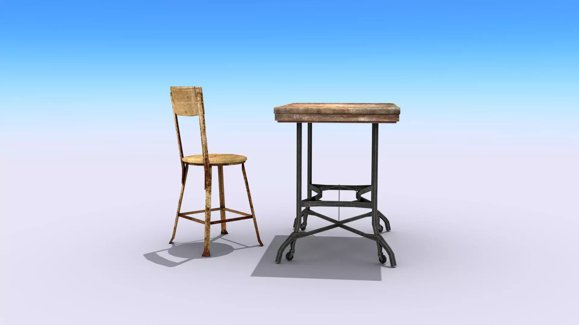 High-quality low-poly 3D model of Old Vintage Table with Chair.