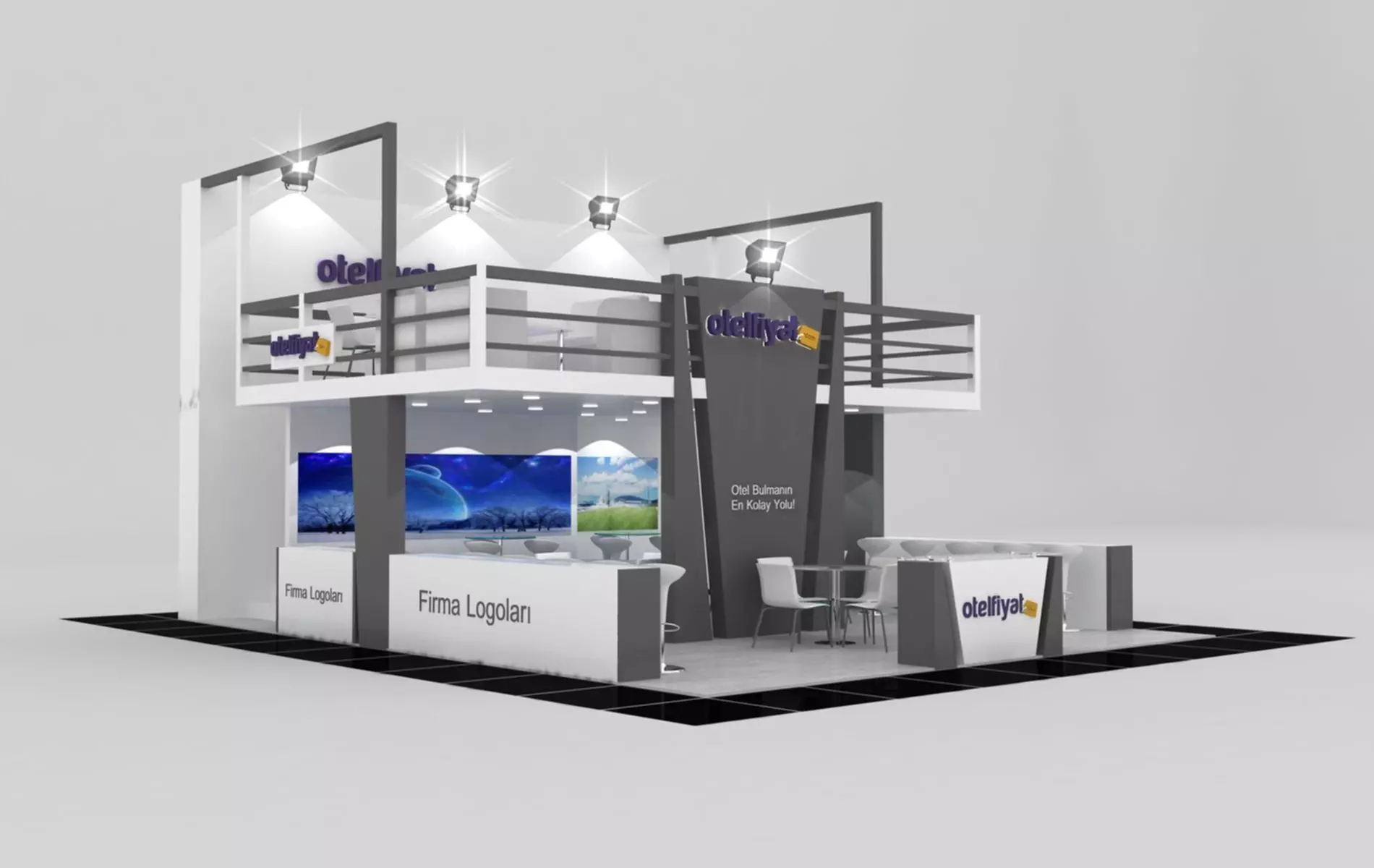 Stall Size 9 m x 7 m Height 500 cm - 3 Side open- Store- Reception table- TV