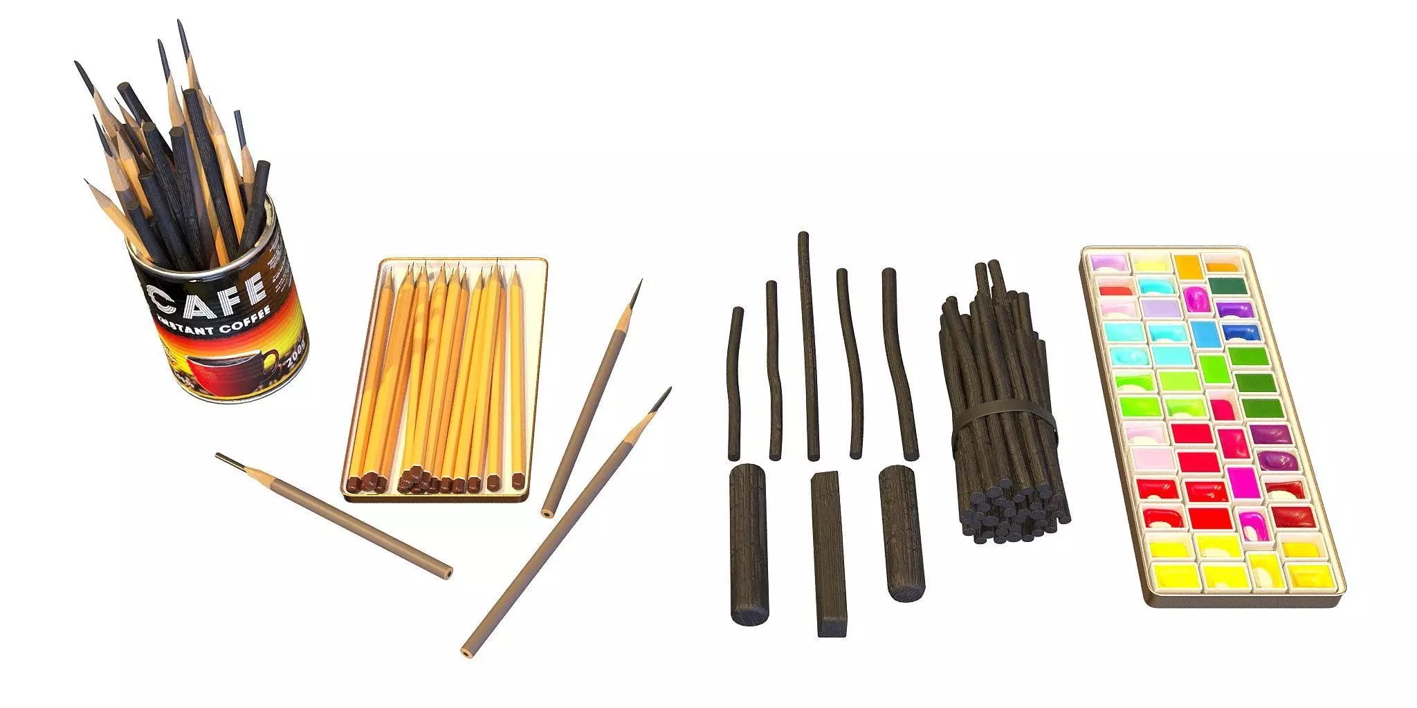 Pencils Charcoal Watercolor 3D model
