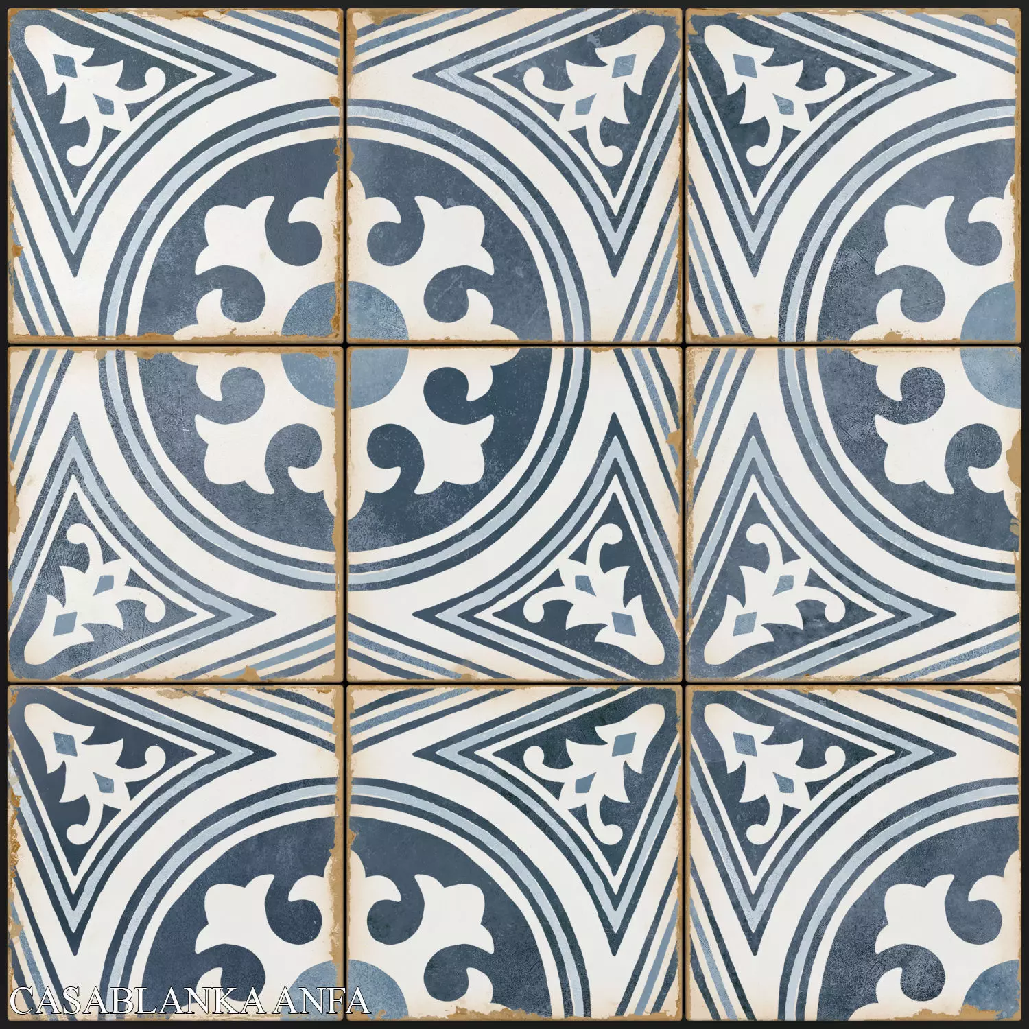 9 types of tiles are presentedTexture Resolution - 2000x2000Inspired by traditional North-African ceramics, CASABLANCA stands out for its charming hand-crafted appearance. Thanks to its uneven edges and Mediterranean-style décors, this is a collection conspicuous for its warmth. Available in a 12.5x12.5cm format, CASABLANCA's plain white field tile and 10 different décors can be combined in a multitude of different ways. Suitable for use on both walls and floors, its slightly aged appearance is conceived to blend in harmoniously with the rest of the home.