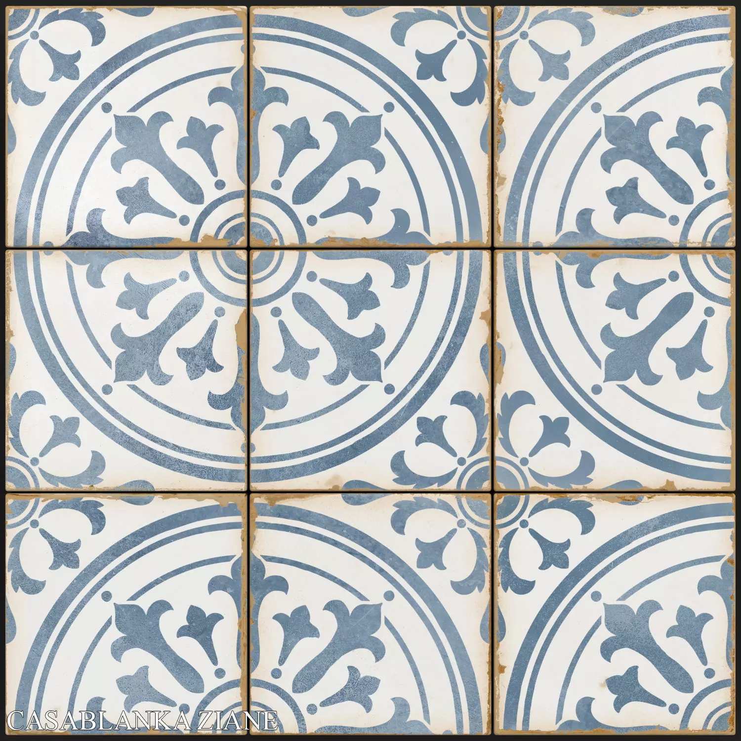 9 types of tiles are presentedTexture Resolution - 2000x2000Inspired by traditional North-African ceramics, CASABLANCA stands out for its charming hand-crafted appearance. Thanks to its uneven edges and Mediterranean-style décors, this is a collection conspicuous for its warmth. Available in a 12.5x12.5cm format, CASABLANCA's plain white field tile and 10 different décors can be combined in a multitude of different ways. Suitable for use on both walls and floors, its slightly aged appearance is conceived to blend in harmoniously with the rest of the home.