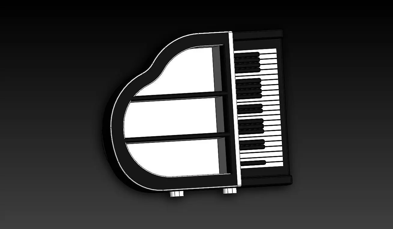 This is a piano-themed bookshelf is a stunning fusion of music and functionality, designed to resemble a grand piano or a keyboard. This 3D design features sleek, curved elements that mimic the elegant structure of a piano, with black and white shelf divisions resembling piano keys. The bookshelf can have a tiered structure, where the top surface mirrors the lid of a grand piano, and the side panels gracefully curve like the instrument's body.