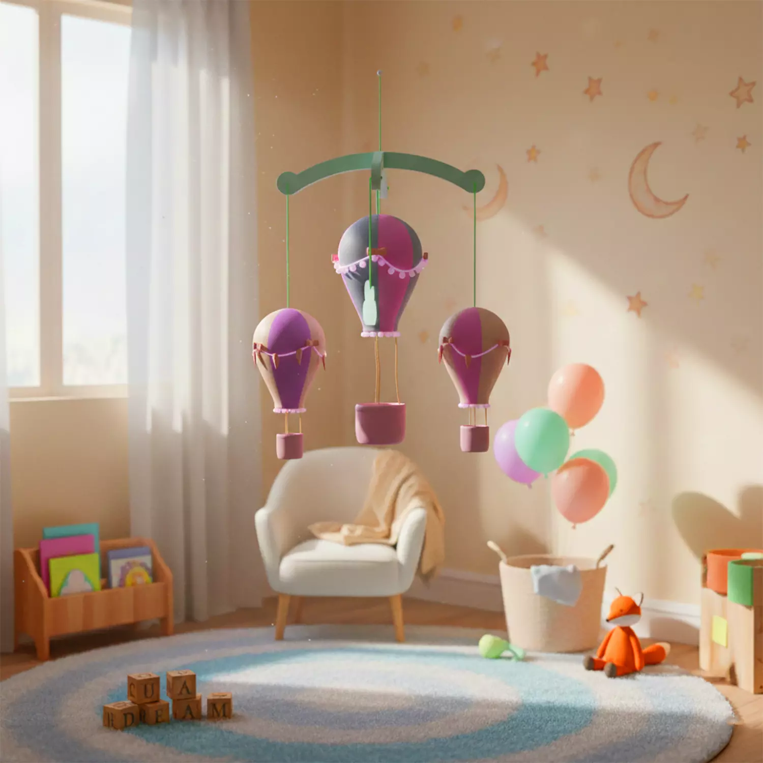 FeaturesCute hot air balloon hanging mobile designIdeal for baby room / nursery scenesSoft pastel colors for a warm, dreamy lookClean topology and optimized geometryHigh-quality materials and smooth shadingReady for close-up renders