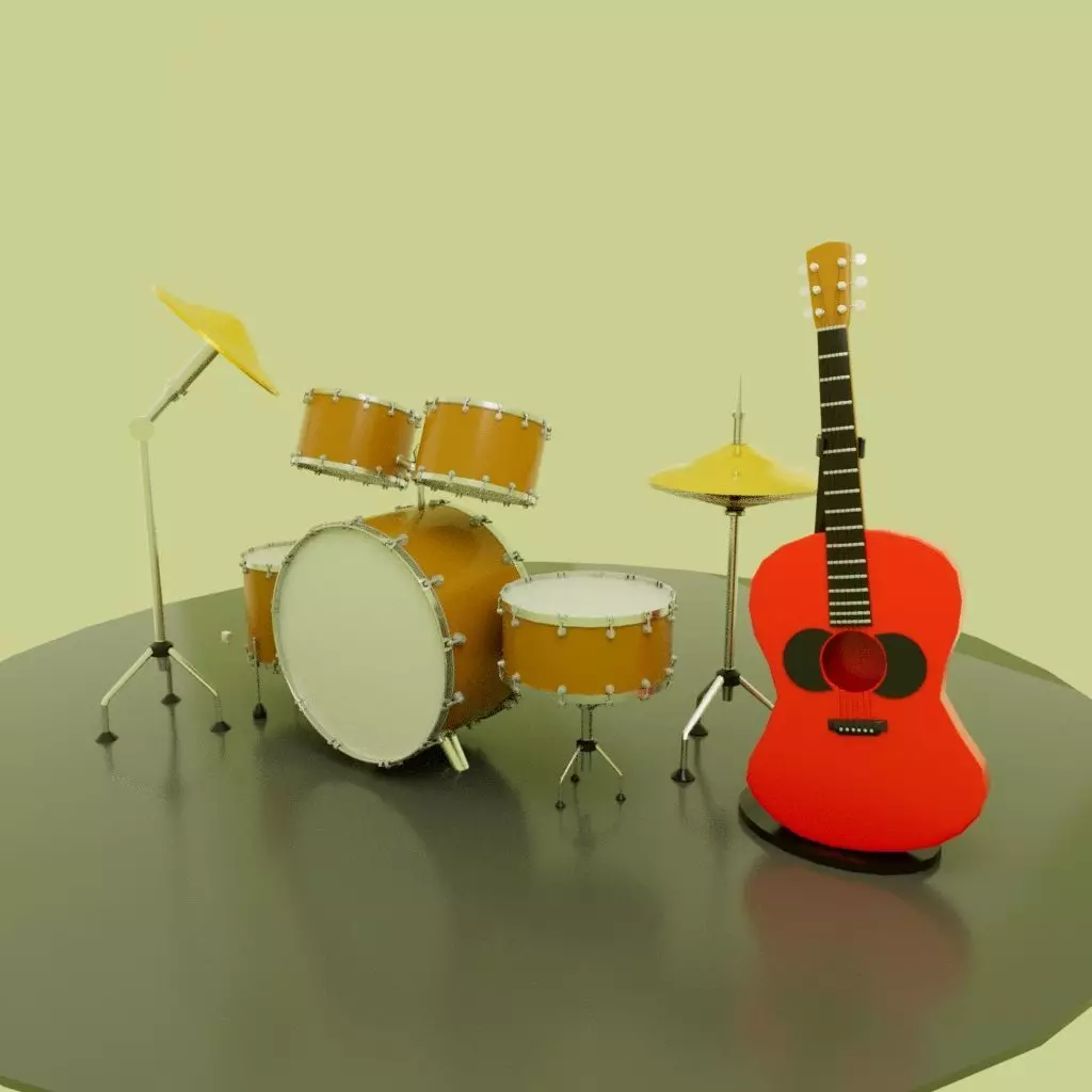 This high-quality 3D Music Band Instruments Set includes a realistic drum kit and an acoustic guitar with stand, designed for use in games, animations, visualizations, and studio or concert scenes.The model is created in Autodesk Maya with clean topology, proper real-world scale, and well-organized meshes, making it easy to integrate into any 3D workflow. All instruments are separate objects, allowing flexible placement and customization.The asset is suitable for game-ready environments, music-themed renders, stage setups, and educational or commercial projects. Materials are optimized for modern rendering engines and compatible with popular software such as Blender, Unreal Engine, Unity, 3ds Max, and Cinema 4D via FBX and OBJ formats.