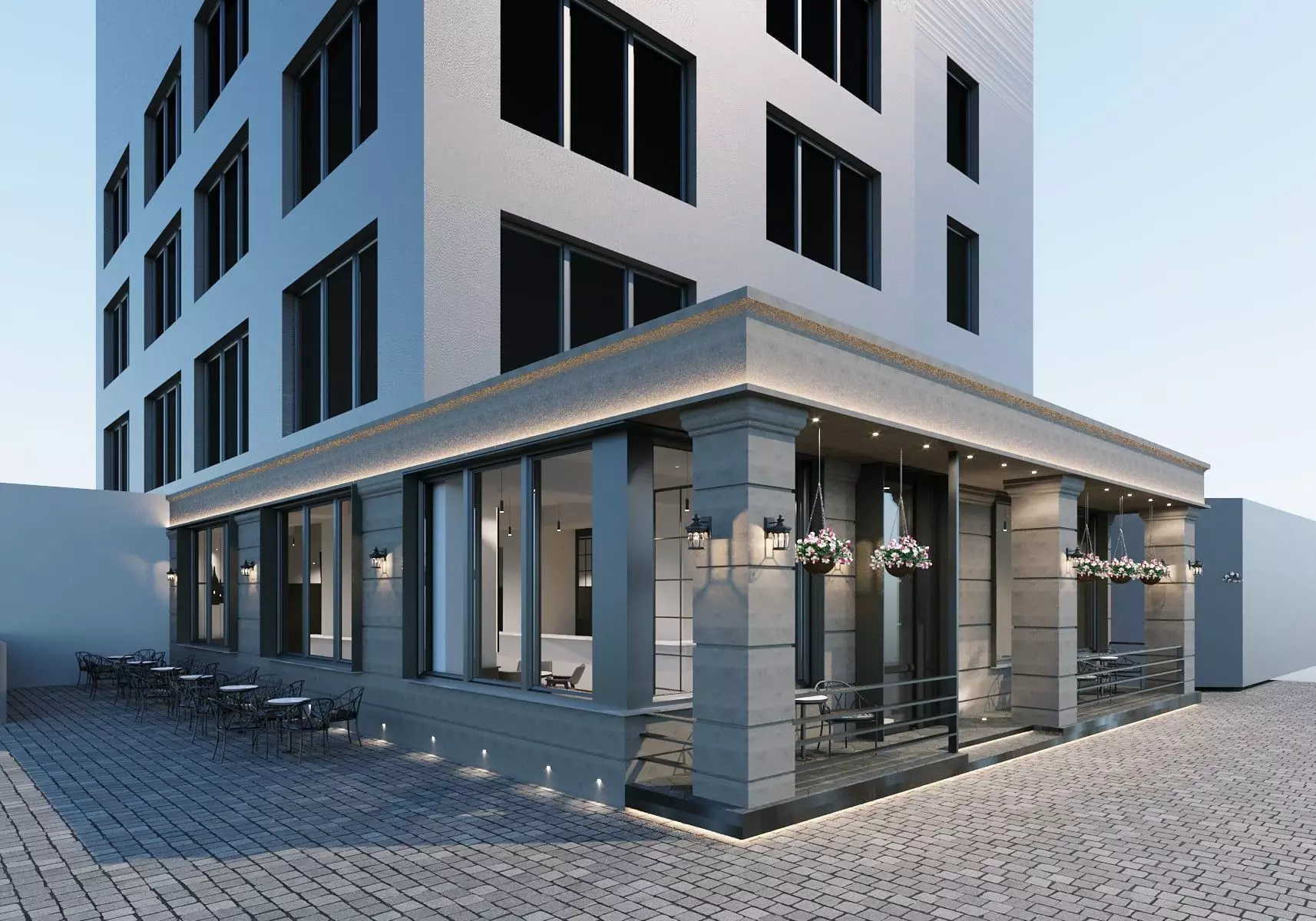 Commercial Versatility: Transform your architectural projects with the versatility of our commercial facade design. Whether it's a boutique hotel, upscale restaurant, or boutique retail store, our scene provides a stunning backdrop that enhances the ambiance and allure of any commercial space.