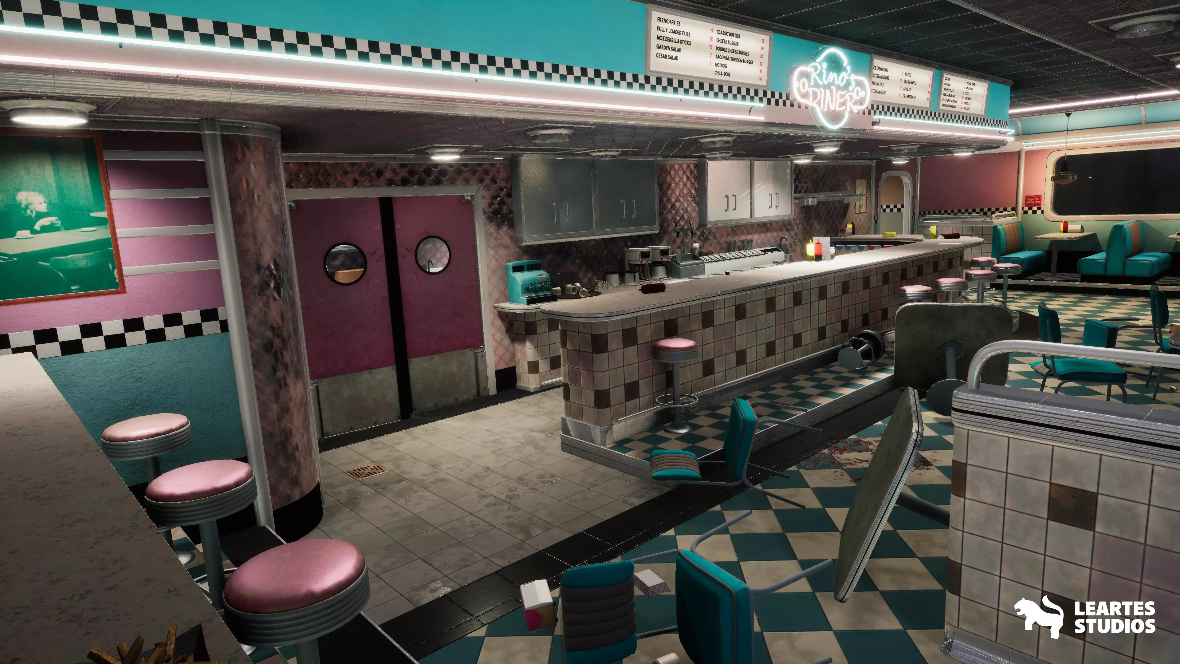 Rino's Diner Environment with 147 Unique Meshes. Including all showcased assets, and high-quality assets. With a good level of detail and optimized for Game Ready Projects.