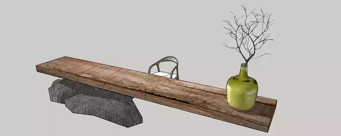 This 3D model features a rustic wooden table resting on natural stone blocks, perfect for interior designs requiring a blend of nature and modern elegance. The table's organic wood texture and unique stone base give it an earthy, organic aesthetic, making it ideal for use in contemporary, rustic, or eco-friendly interior spaces. Designed in SketchUp and converted into FBX format for seamless use in 3ds Max, this model can be used for architectural visualizations, home decor projects, and virtual environments.