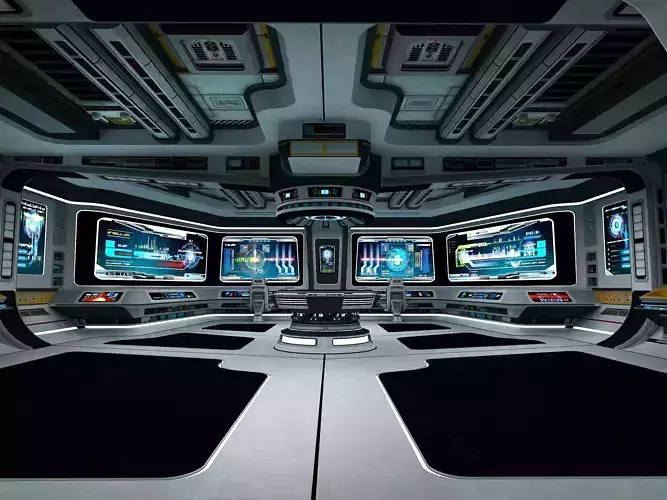 Science fiction internal spacecraft environment Low-poly 3D model