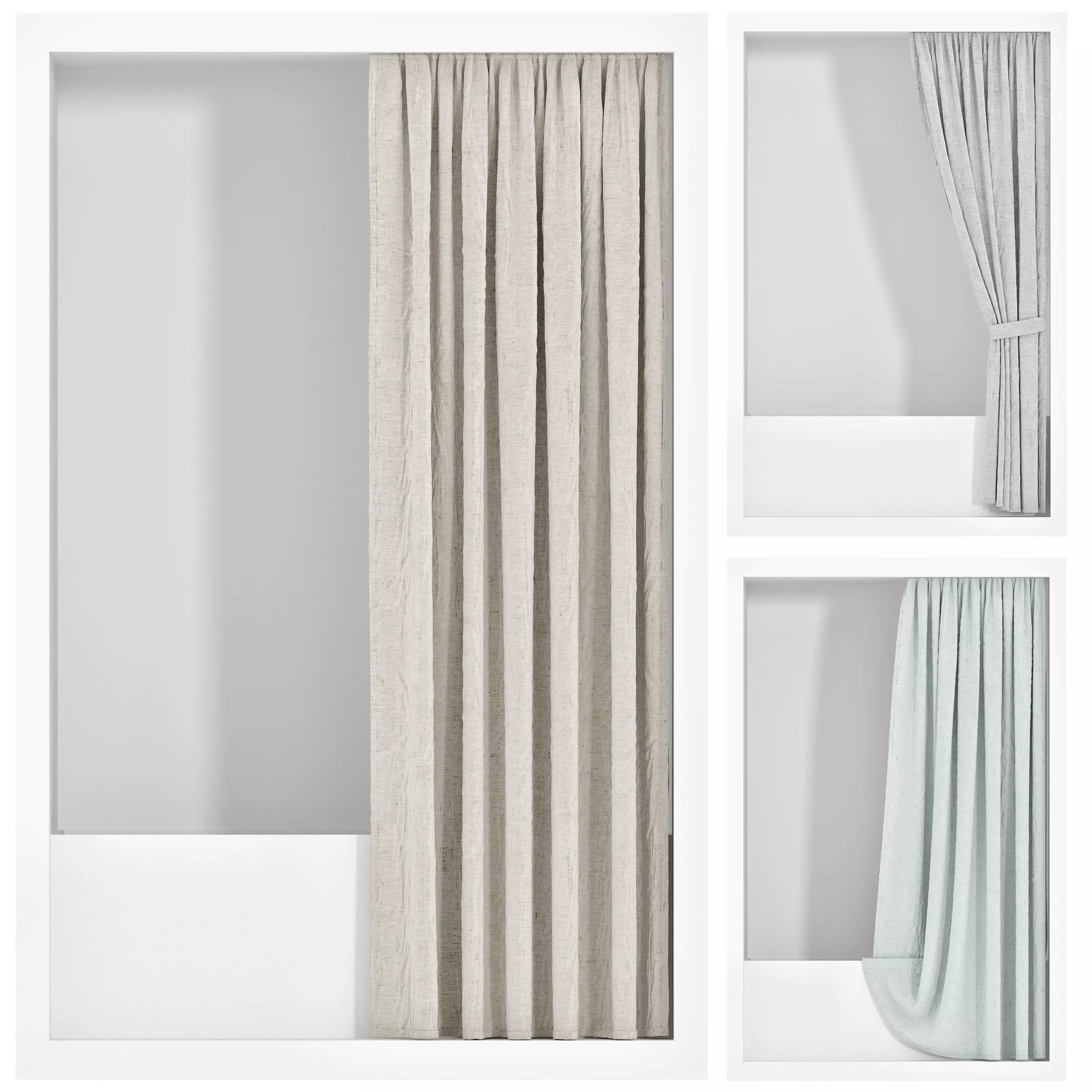 Shower Curtains. Set 04Double curtain for the bath. Decorative outer curtain and inner water-repellent.6 options for placing curtains.There are 6 objects of Shower Curtains in the archive. The material is available in 5 colors.