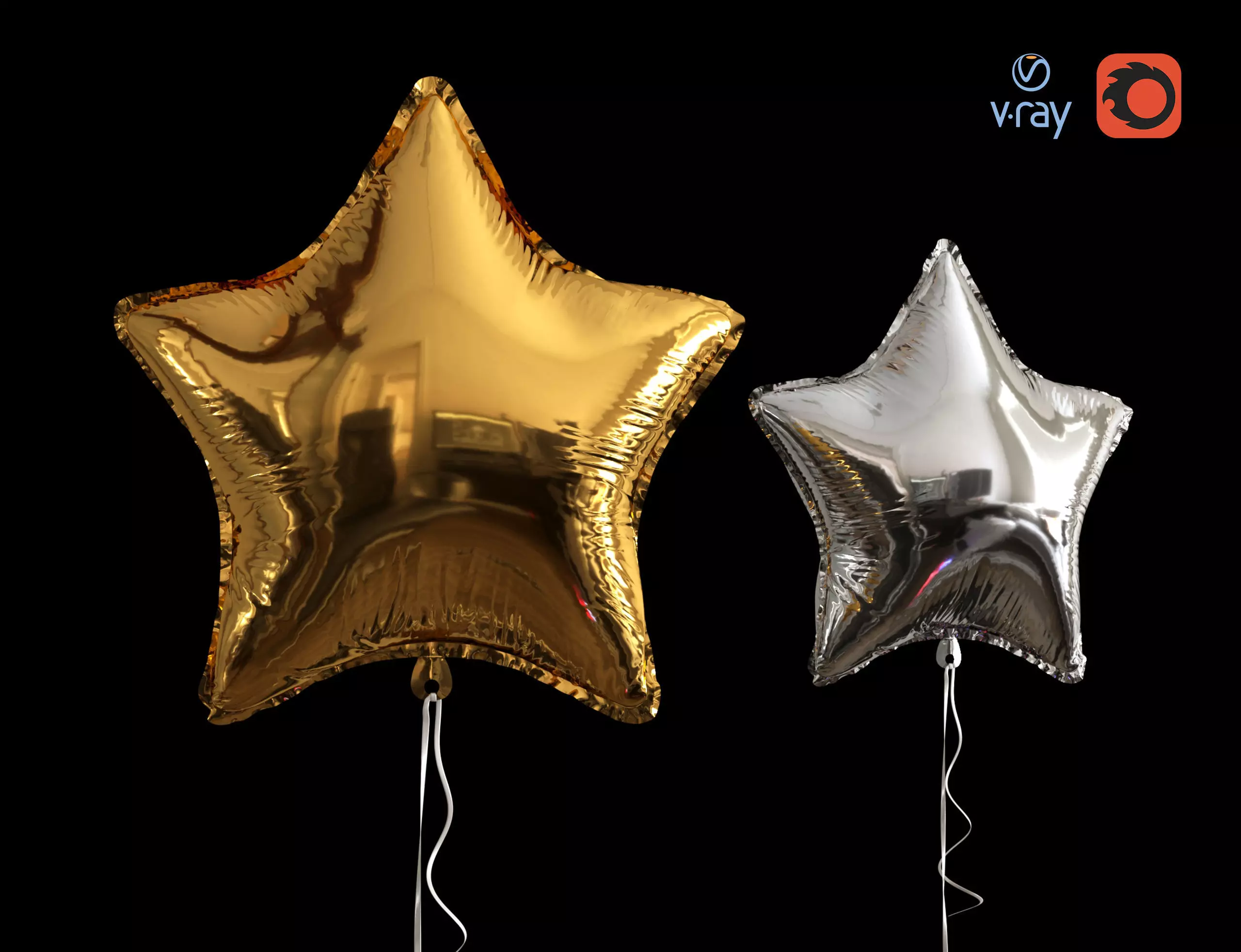-High quality 3d model of Star Balloons;-Ideal for Photorealistic HD show.