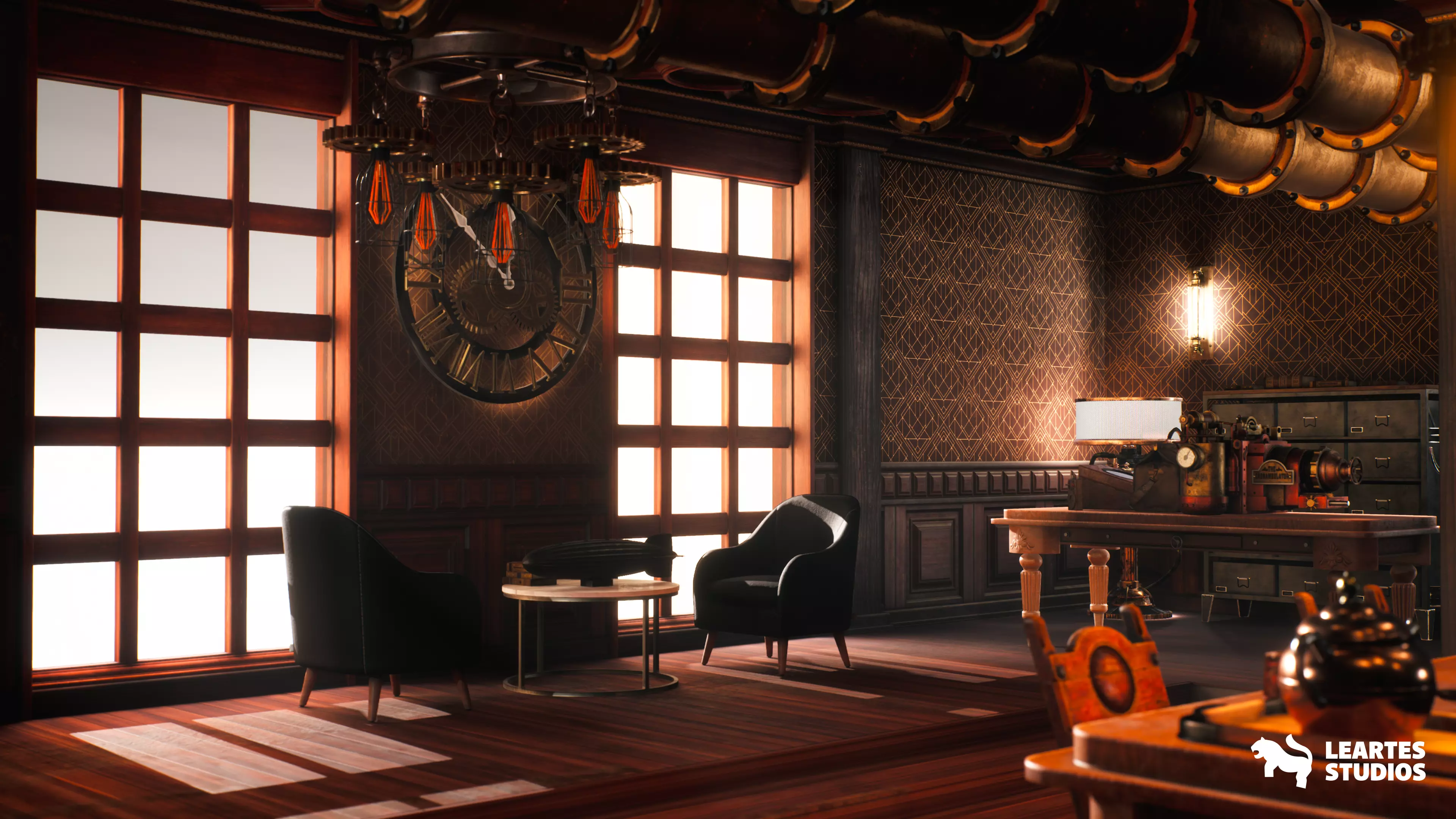 Steampunk/Vintage Interior Environment with 87 Unique Meshes. Including all showcased assets, high-quality assets. With a good level of detail and optimized for Game Ready Projects.