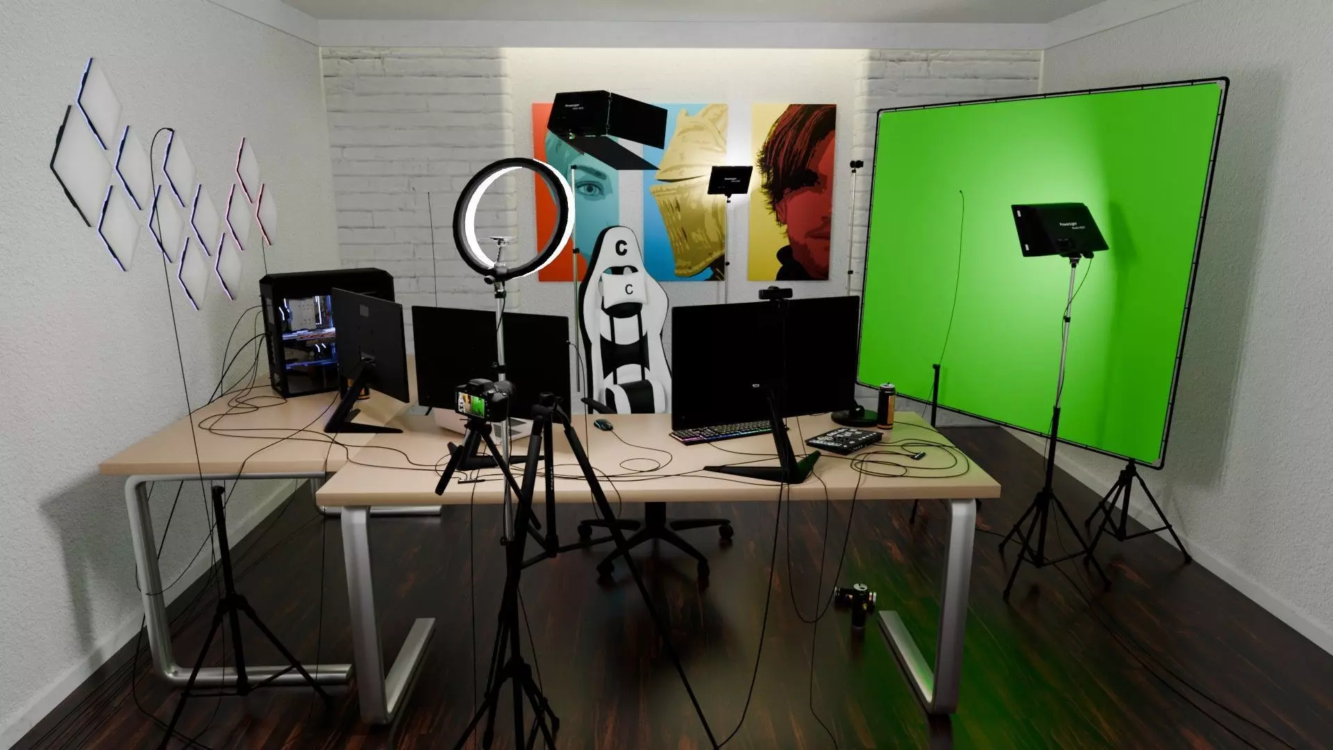 This professionally crafted 3D environment recreates the ultimate streaming setup, perfect for gaming scenes, live broadcasts, YouTube studios, Twitch backgrounds, or virtual productions. Every detail is carefully modeled to reflect a realistic and immersive creator space.
