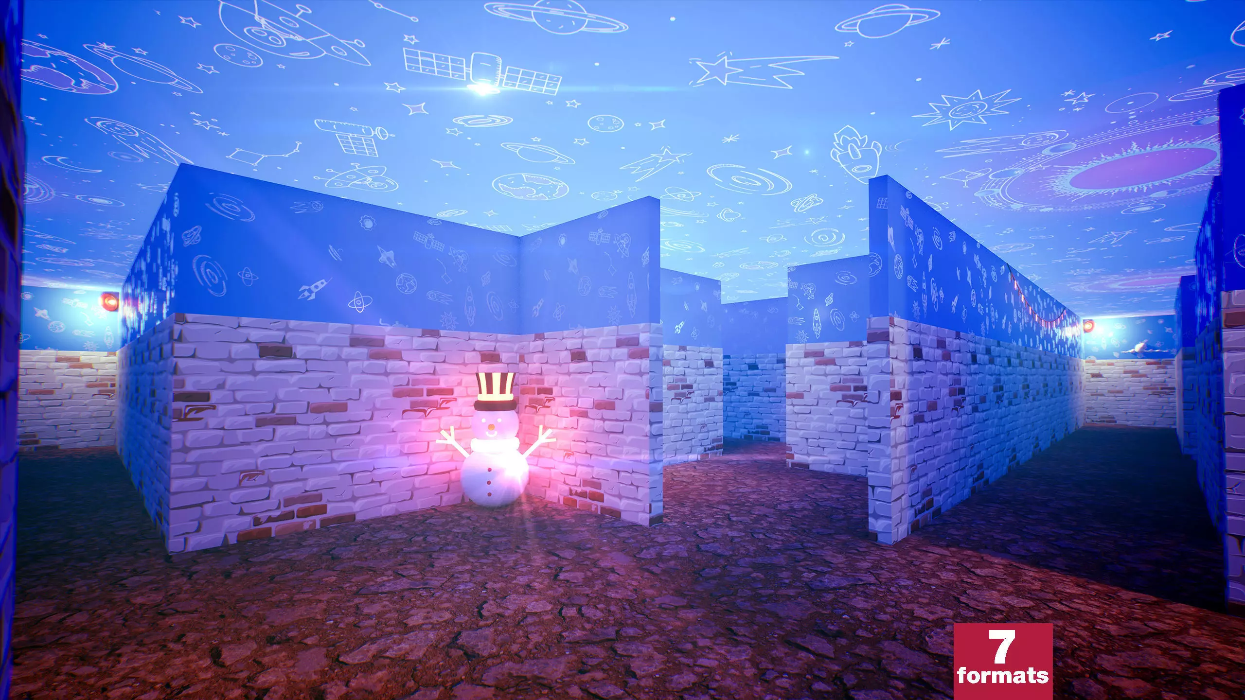 This asset includes a full maze layout with 9 distinct secret rooms, each with its own style and charm. Perfect for use in adventure, puzzle, or holiday-themed games, this level combines whimsical fantasy with stylized sci-fi ambiance.