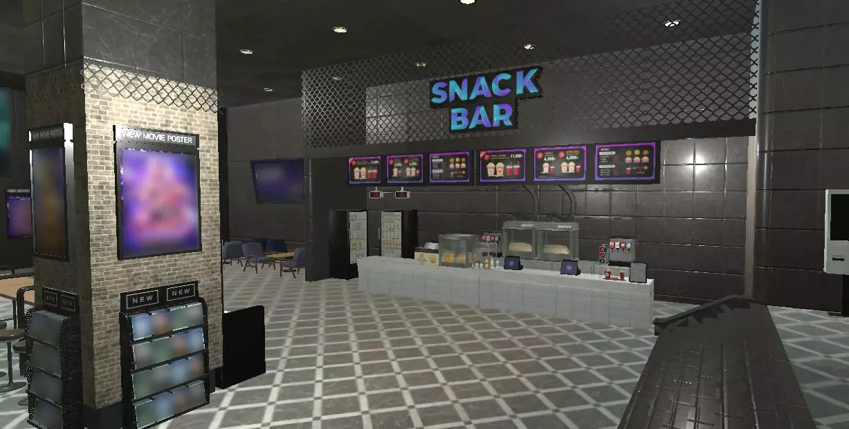 The theater space itself is not provided. This means, this package contains only objects that organizes the theater. You have to place objects and make your own cinema.