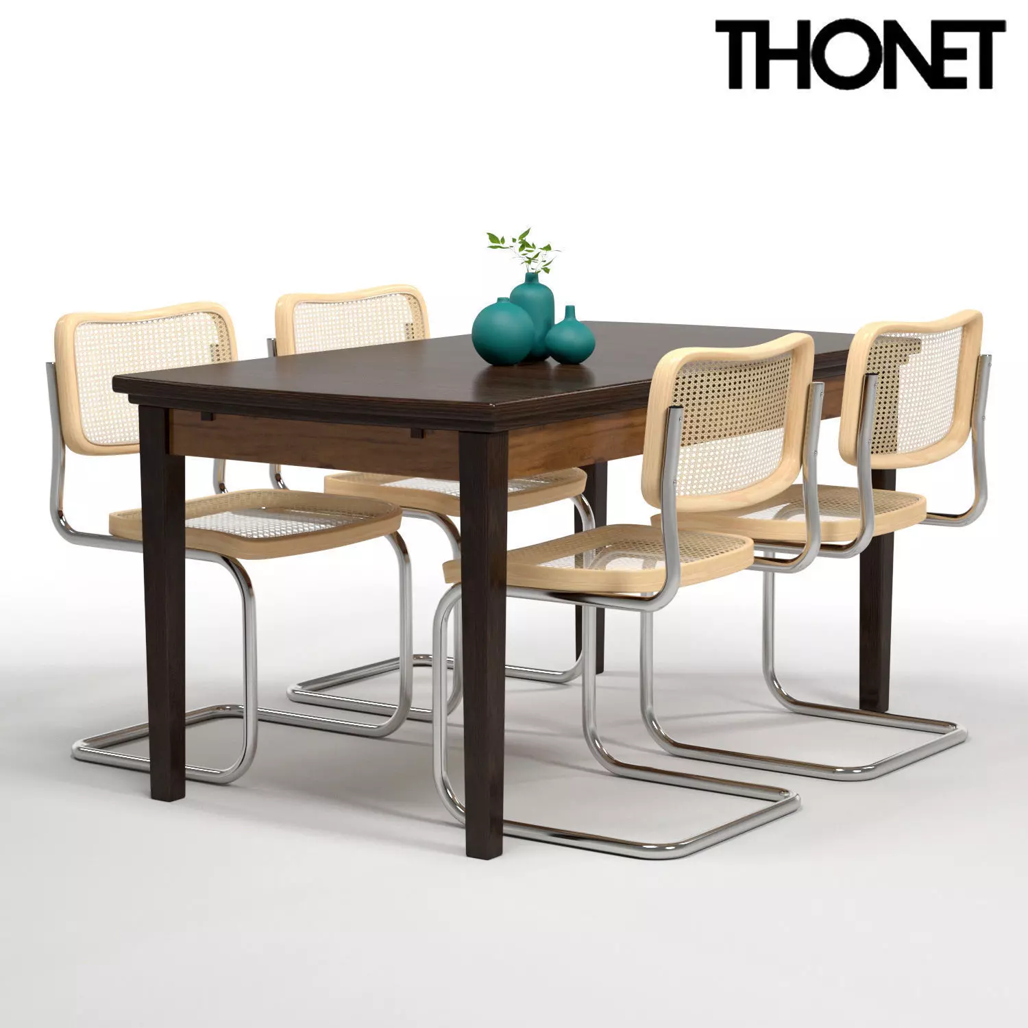 Thonet Chair S32 Wood table 3D model